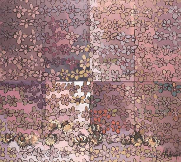 92 | ‚HERBSTKASTANIEN AUF LILA BLÜMCHEN‘ (1979) Öl auf Leinwand. 90 x 100 cm.