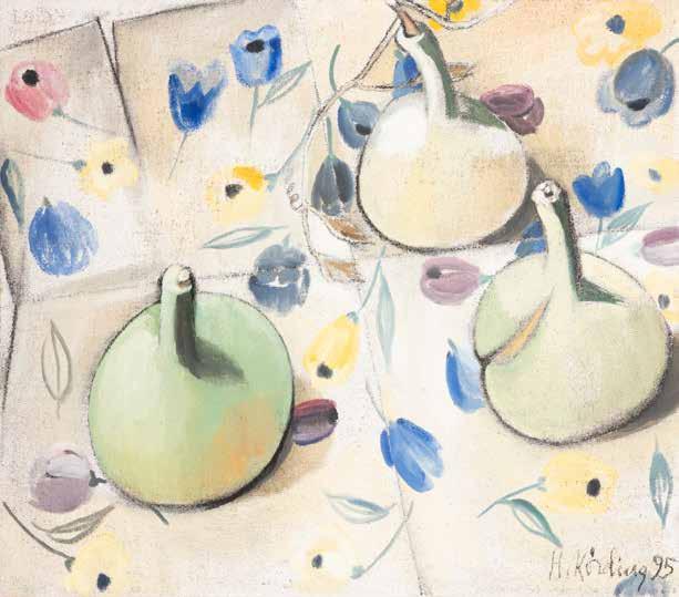Neben den Portraits, die Herma Körding bis in ihr Spätwerk hinein fertigt, nehmen die Stillleben die größte Werkgruppe in ihrem Gesamtwerk ein. Das Motiv der Vergänglichkeit, das bereits seit den niederländischen Stillleben des 17. Jahrhunderts zu einer beliebten Kunstgattung avancierte, faszinierte Herma Körding: