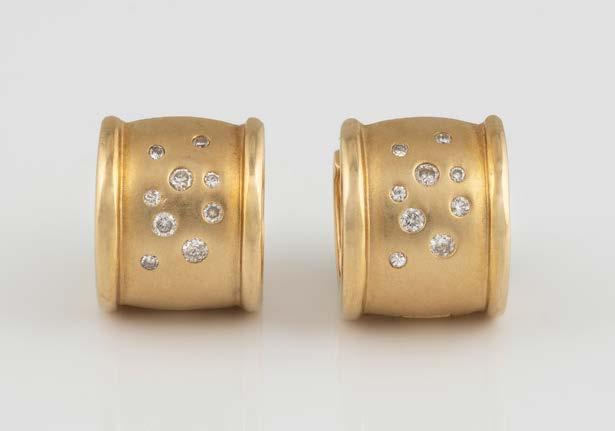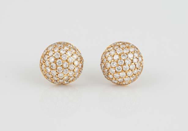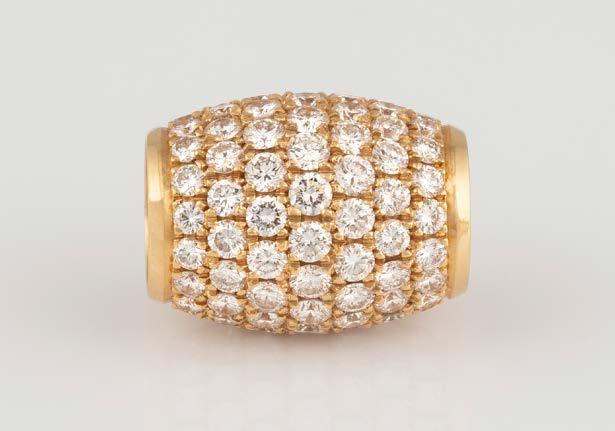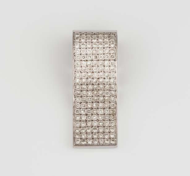 Gelbgold. L. 2,0 cm, Ges.-Gew. ca. 10,0 g. Geprüft 18 K. Zusammen 108 Brillanten, zusammen ca. 1,9 ct. Minimalste Tragespuren.