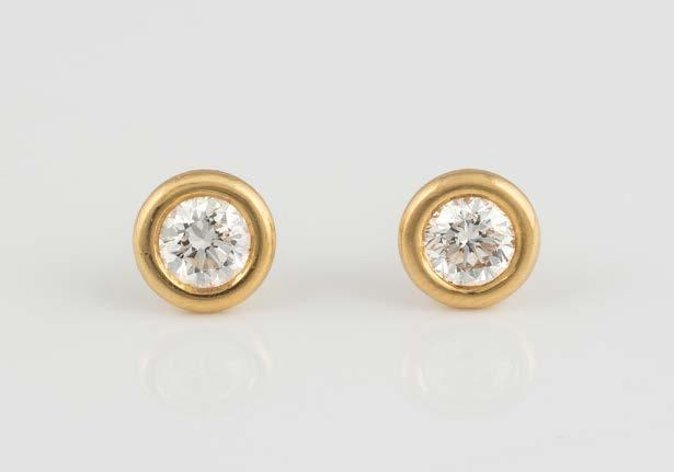 Gelbgold. D. 0,8 cm, Ges.-Gew. ca. 2,7 g. Gest. 750. Jeweils ein Brillant, zusammen ca. 0,9 ct.