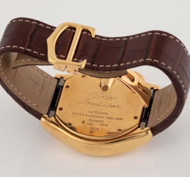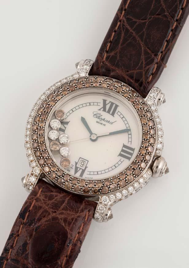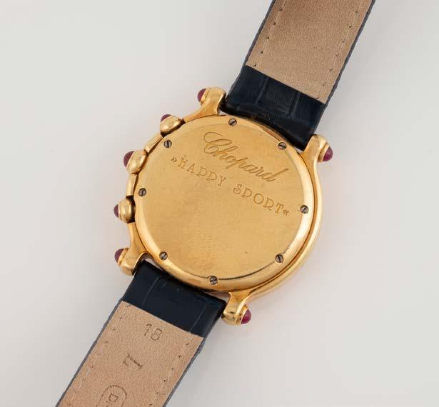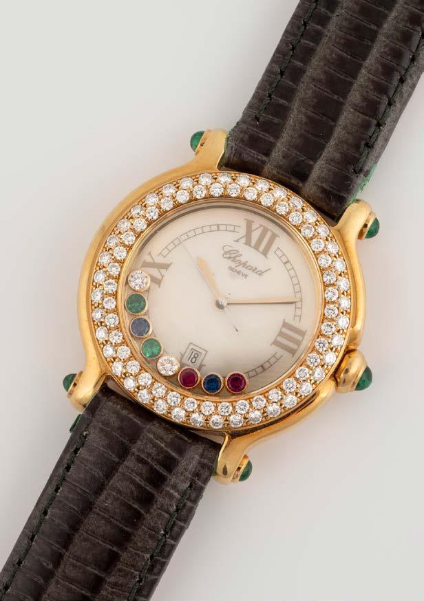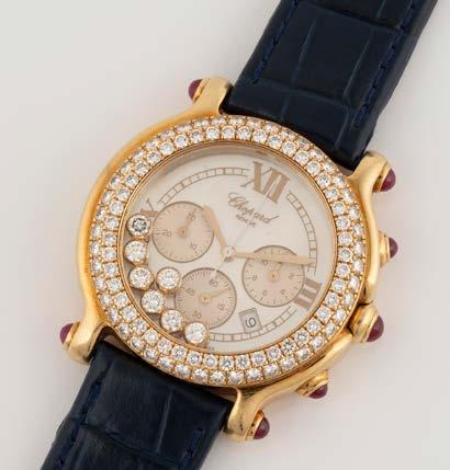 Gelbgold. L. 19 cm, Ges.-Gew. ca. 26,1 g. Gest. 750, Herstellersignet ‚Chopard LUC‘, nummeriert. Drei bewegliche Diamanten, Glas bezeichnet ‚Chopard Geneve‘. Leichte Tragespuren.
