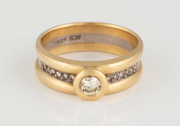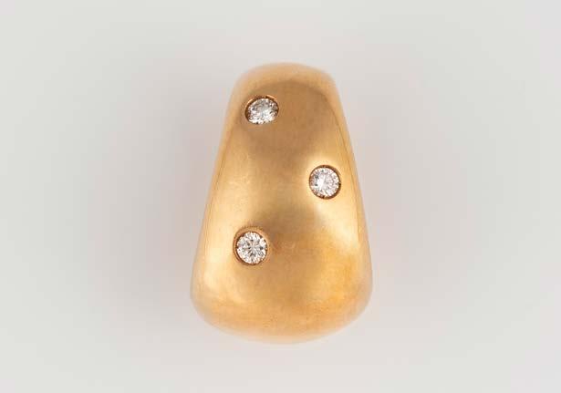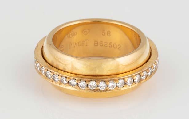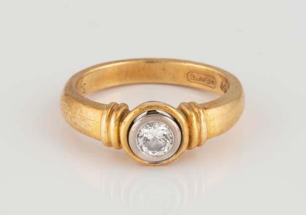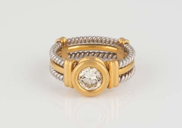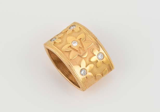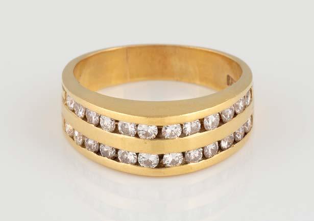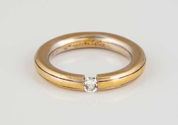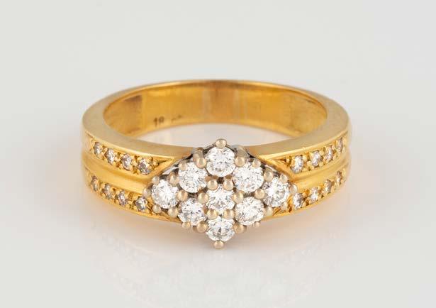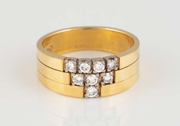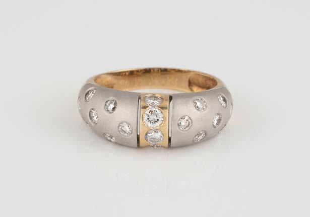 Gelbgold. Ringmaß ca. 56, Ges.-Gew. ca. 9,6 g. Gest. 750. 23 Brillanten, zusammen ca. 0,23 ct. Minimalste Tragespuren.