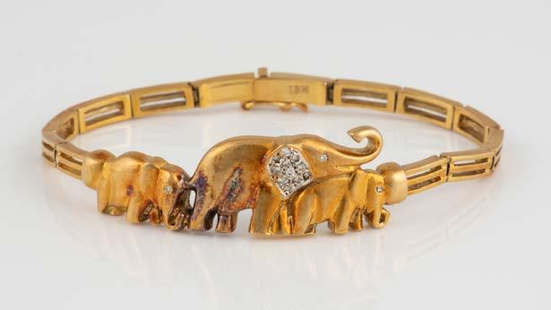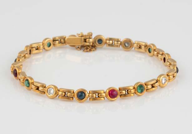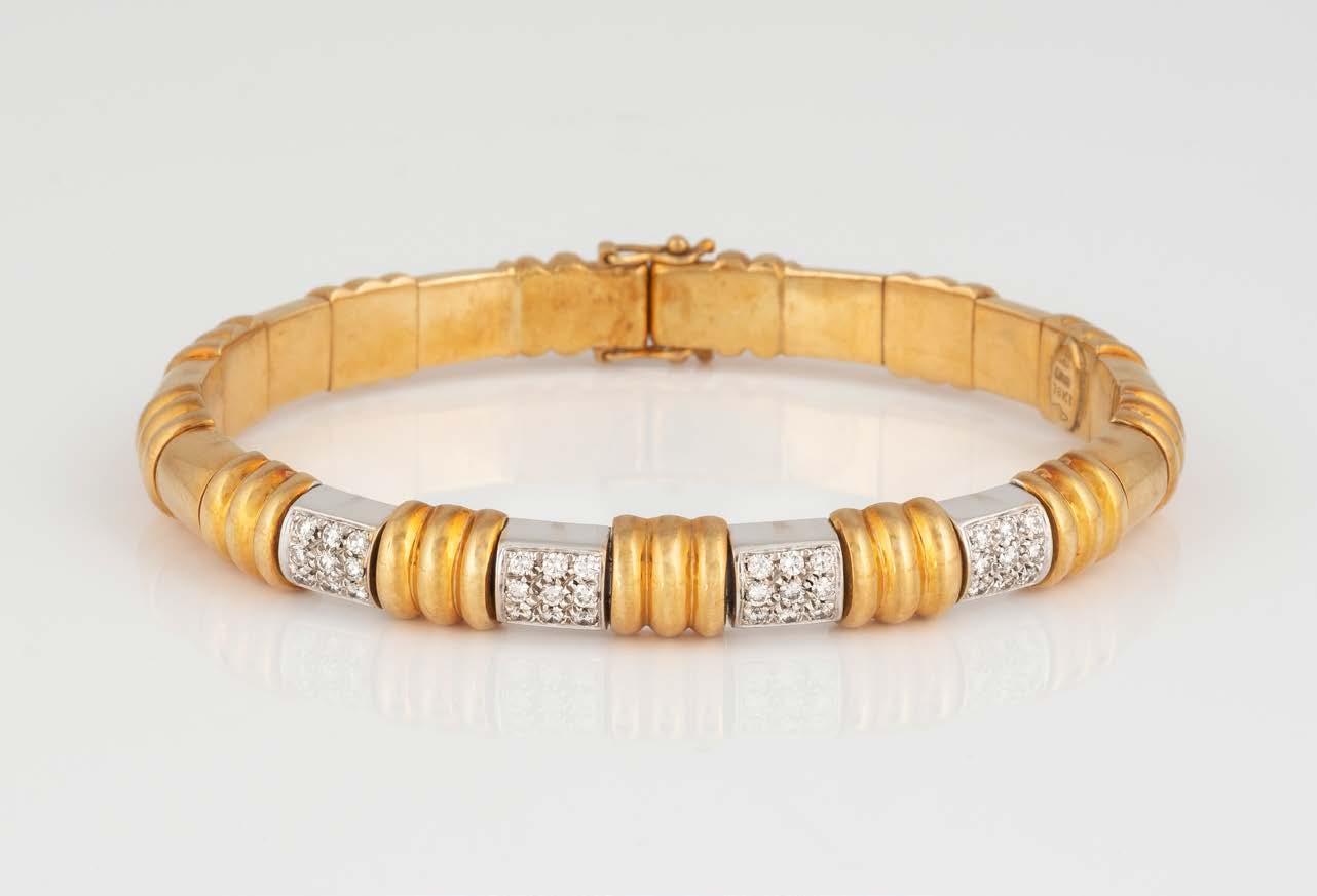Gelbgold. L. 18 cm, Ges.-Gew. ca. 12,3 g. Gest. 750, Herstellersignet, italienische Marke. 66 Brillanten, zusammen ca. 1,6 ct. Minimalste Tragespuren.