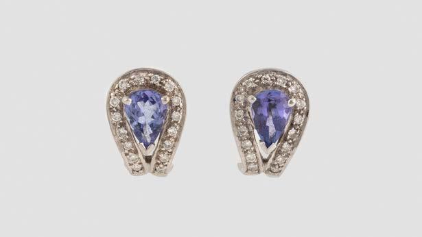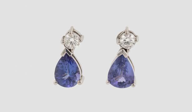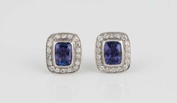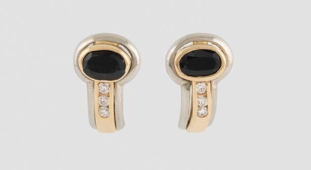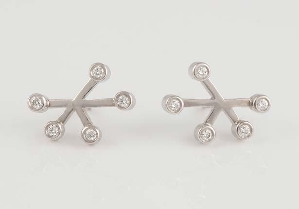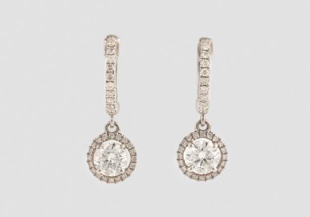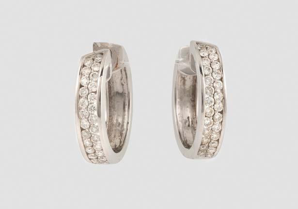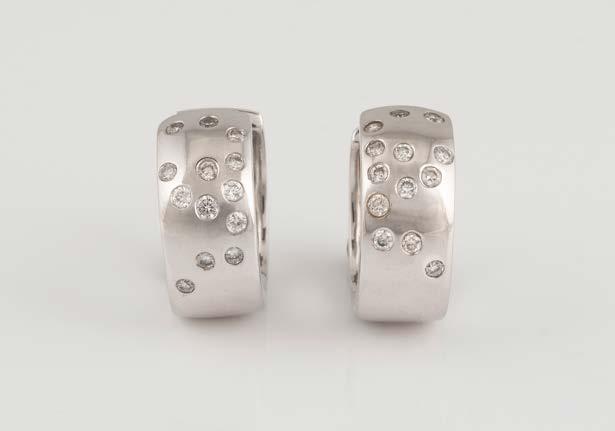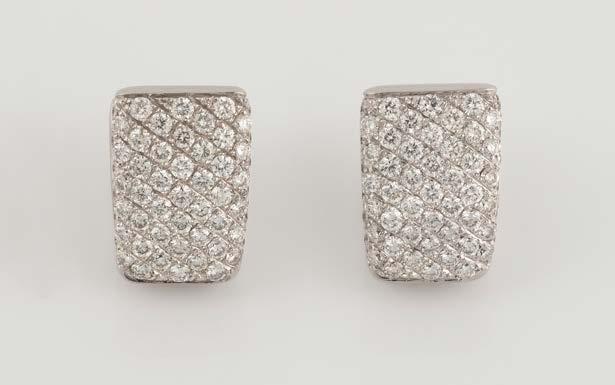Weißgold. L. 1,2 cm, Ges.-Gew. ca. 9,2 g. Gest. 750. Trapezförmige Ohrstecker, zusammen besetzt mit insgesamt 90 Brillanten, zusammen ca. 0,8 ct.