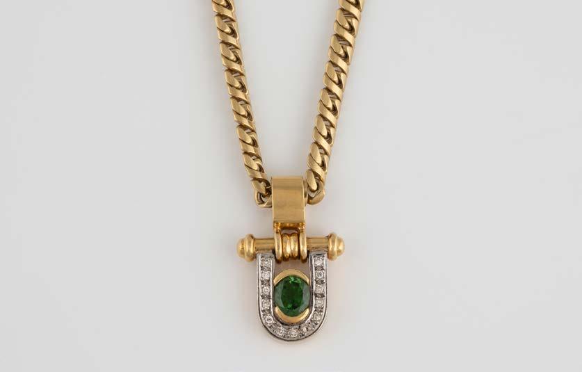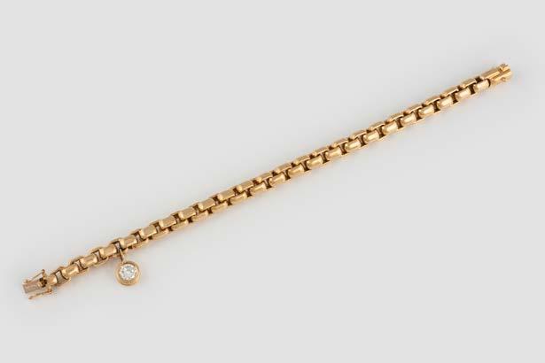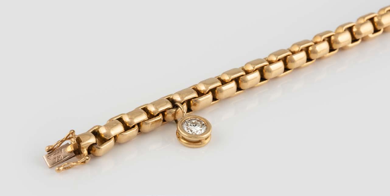 Gelbgold. L. 21 cm, Ges.-Gew. ca. 41,1 g. Gest. 750, Herstellersignet. Ein Brillant, ca. 1,1 ct., Kalette mit kleiner Facette. Brillantanhänger sekundär.
