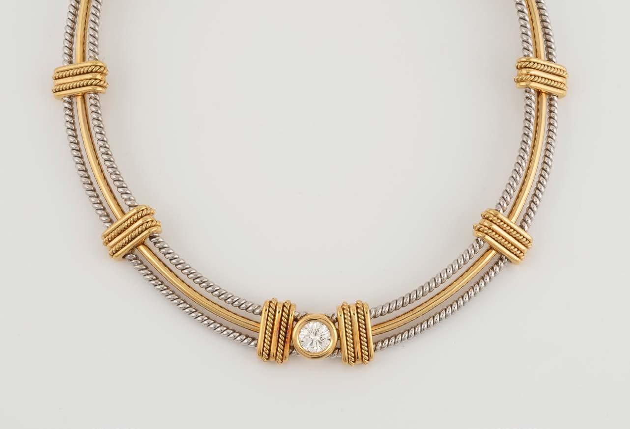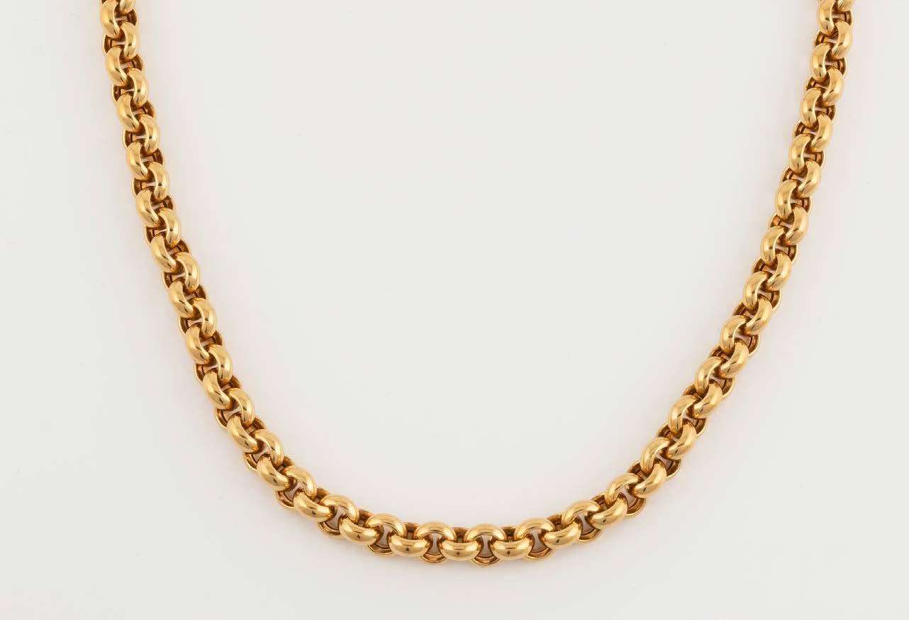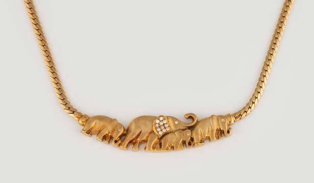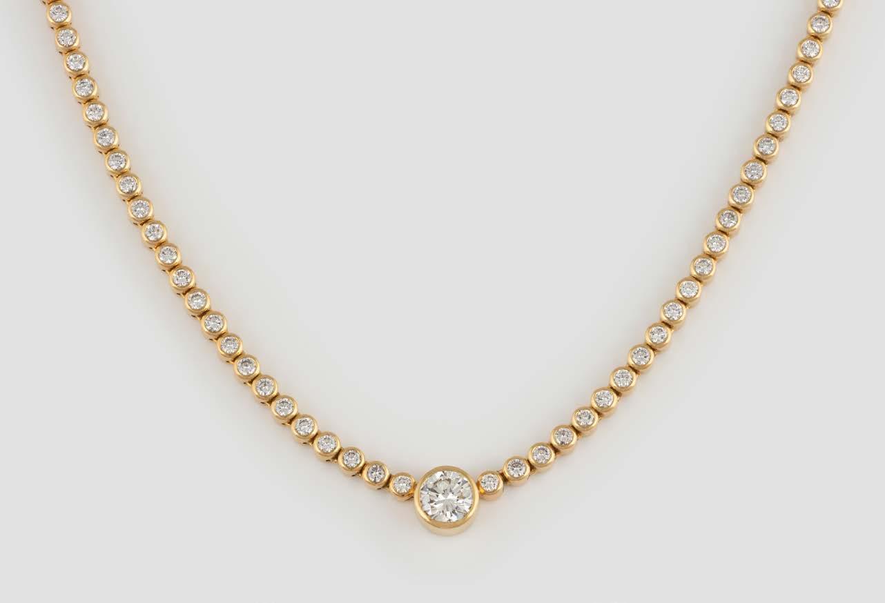 Gelbgold. L. 43,8 cm, Ges.-Gew. ca. 45,7 g. Gest. 750, Herstellersignet, nummeriert, Gesamtcaratangabe geritzt (7,21). 108 Brillanten, zusammen ca. 5,80 ct., ein Brillant, ca. 1,41 ct. Minimale Tragespuren.
