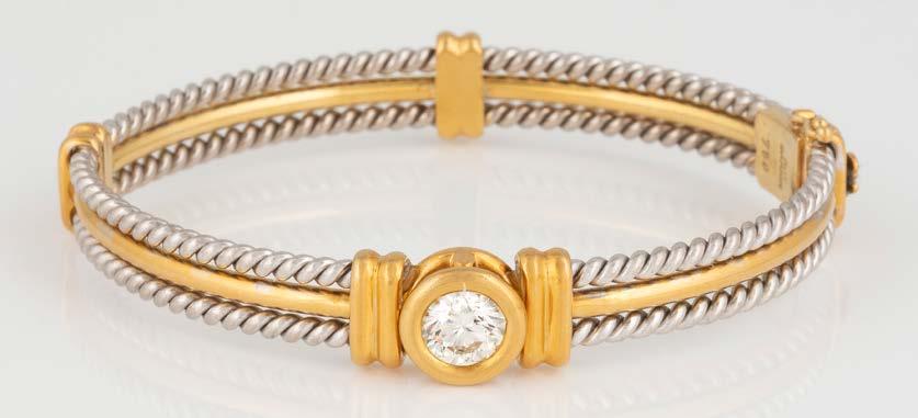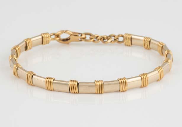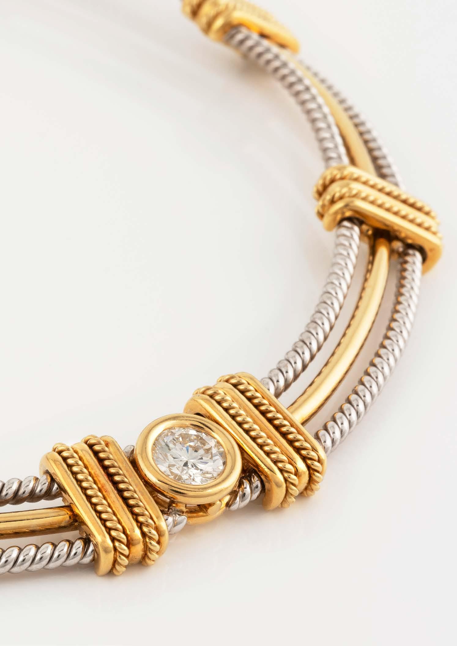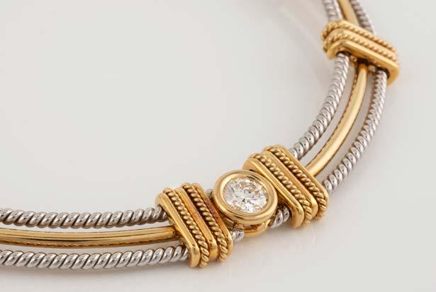 Gelbgold, Weißgold. L. 19 cm, Ges.-Gew. ca. 30,3 g. Gest. 750. Fünf Brillanten, zusammen ca. 0,7 ct.