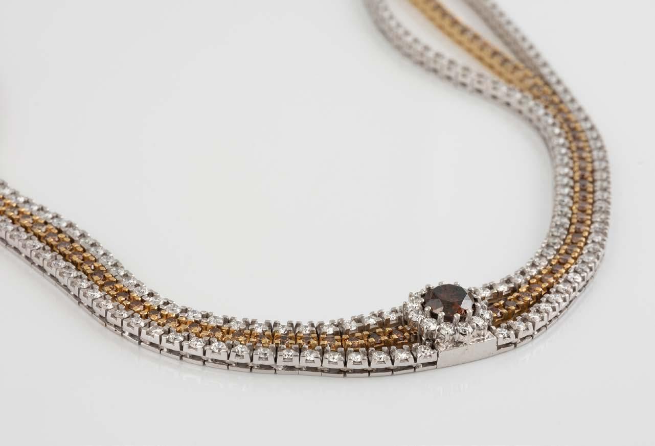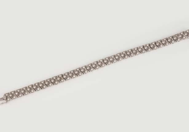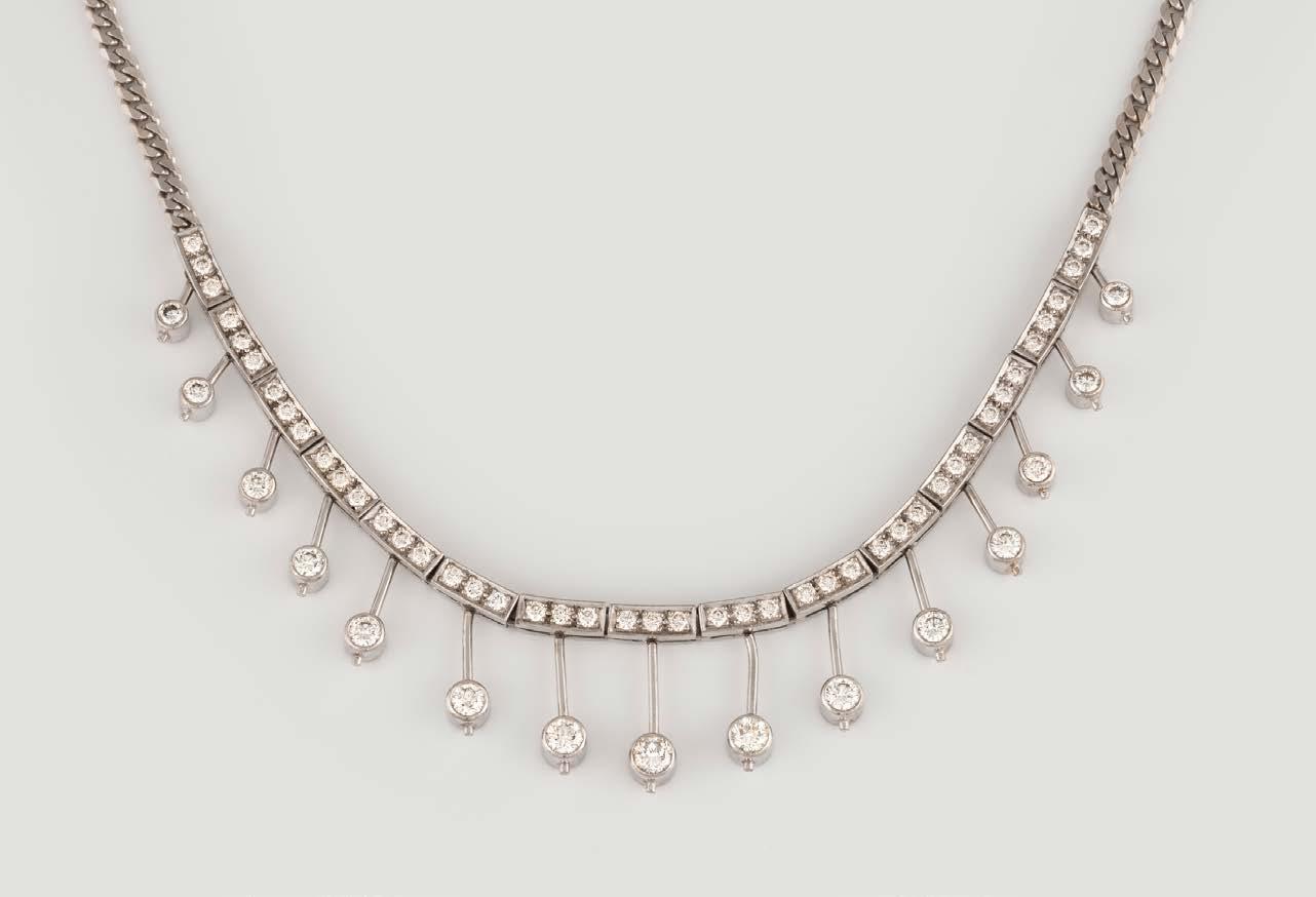 Weißgold. L.42 cm, Ges.-Gew. ca. 17,6 g. Gest. 18 K. 59 Brillanten, zusammen ca. 4,9 ct. Minimale Tragespuren.