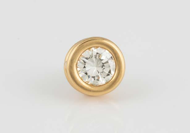 Gelbgold. D. 1,0 cm, Ges.-Gew. ca. 2,8 g. Fassung geprüft 18 K. Ein Brillant, D. ca. 6,5 mm, Höhe nicht messbar. Schraubbrisur und Steckelement ungeprüft.