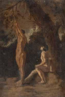 Oil on wood. 18 x 14 cm (F. 21 x 17,5 cm). Damaged. Original frame.