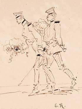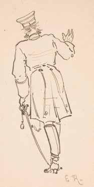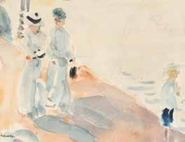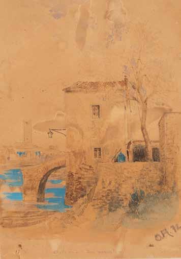 Watercolour, pencil on paper. Visible size 19 x 28 cm (F. 40 x 52 cm). Slightly browned. Framed behind glass in passepartout (unopened).