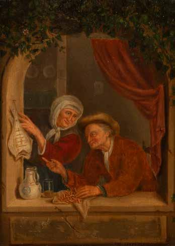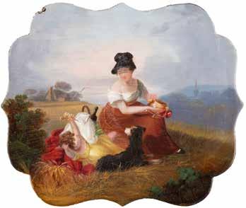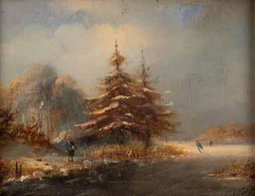 Öl-Lackmalerei auf Papiermaché, auf Platte. 20,5 x 24.5 cm (R. 32 x 37 cm). unten undeutlich bez. 'Rustic ...'. Krakelee, oben links kl. Chip. Rahmen.