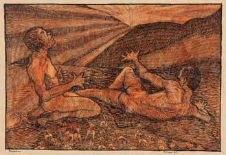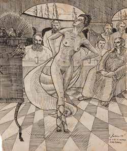 Gouache on paper. Max. 32 x 13 cm (F. 54 x 64 cm). Spotty, min. wavy. Framed behind glass.