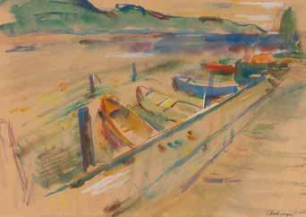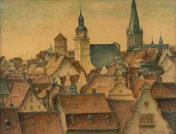 Aquarell, Bleistift auf Papier. SM 19 x 28 cm (R. 40 x 52 cm). Leicht gebräunt. Hinter Glas im Passepartout gerahmt (ungeöffnet).