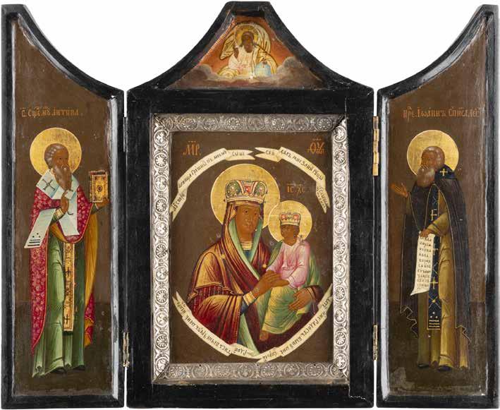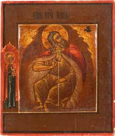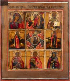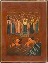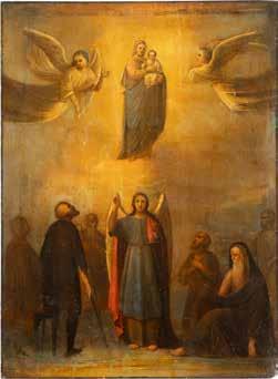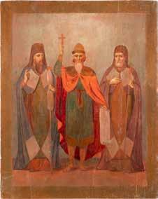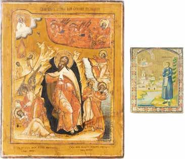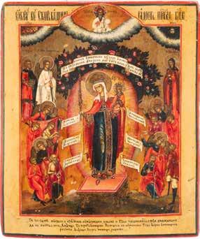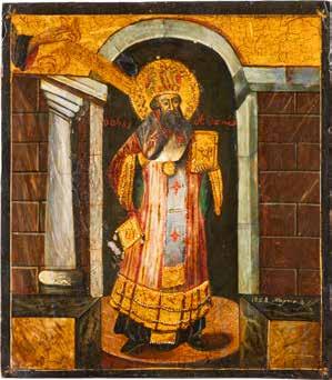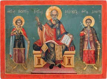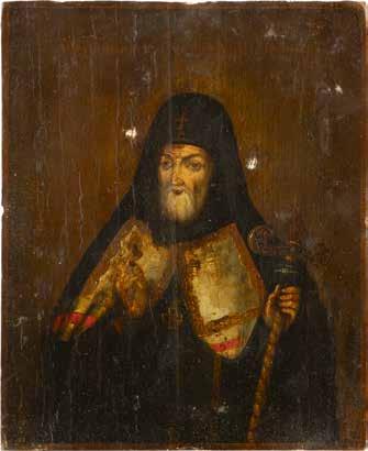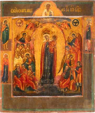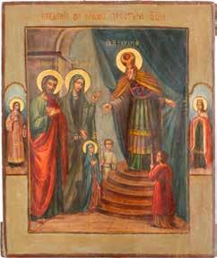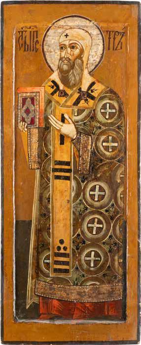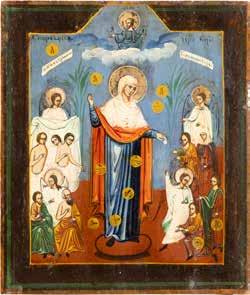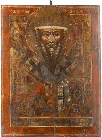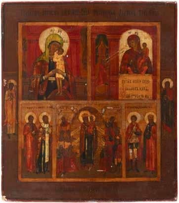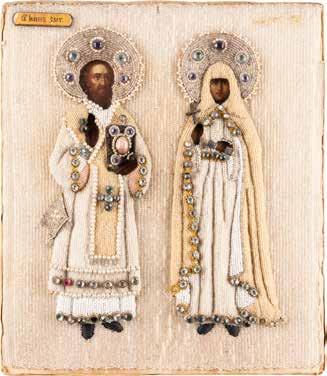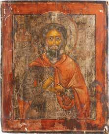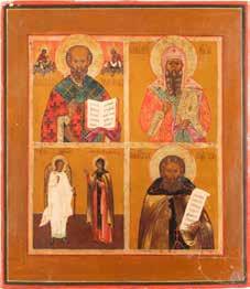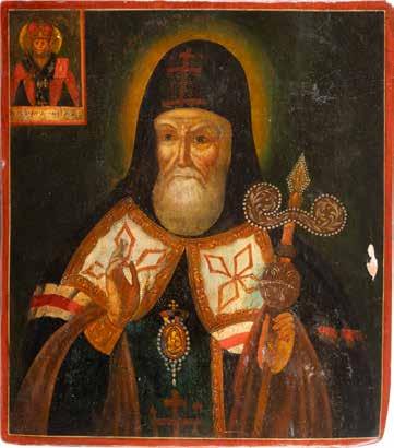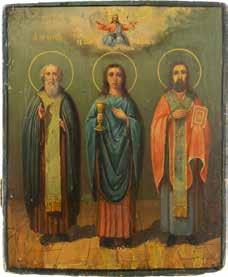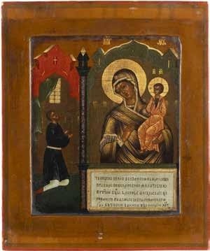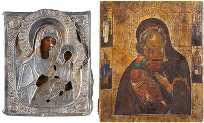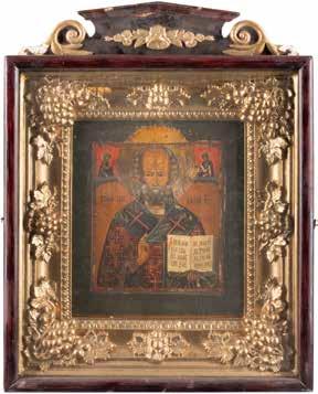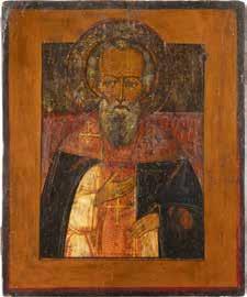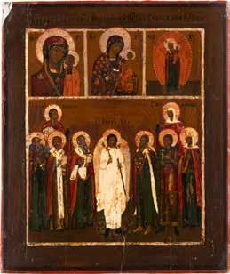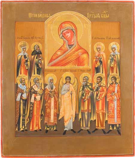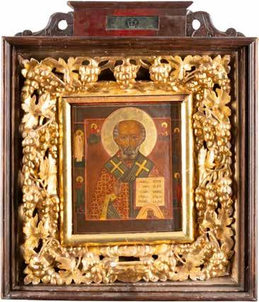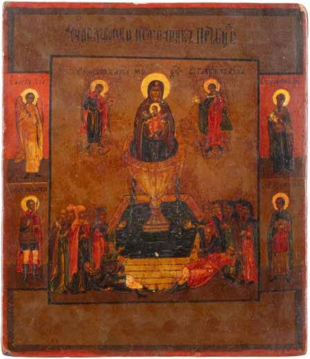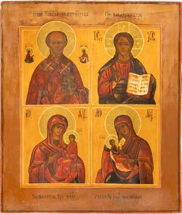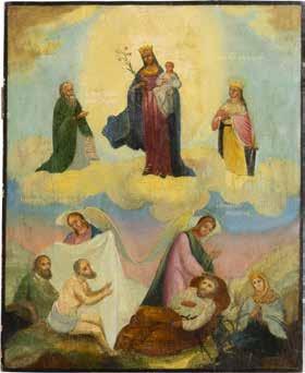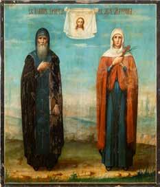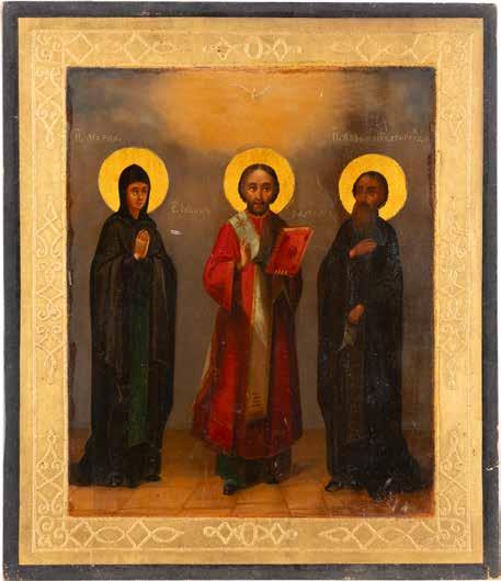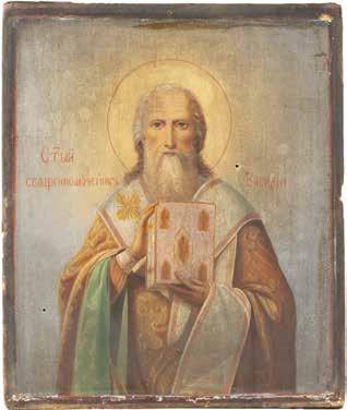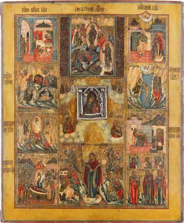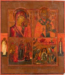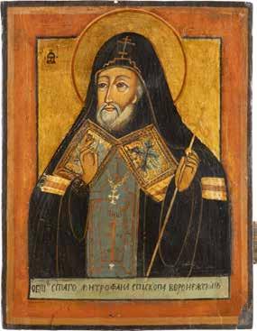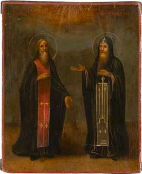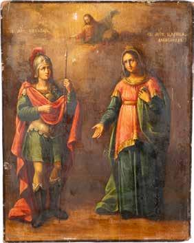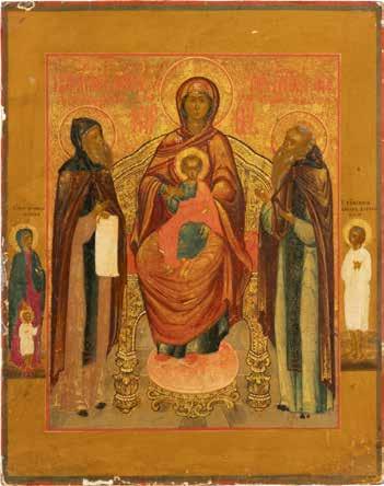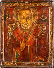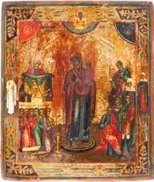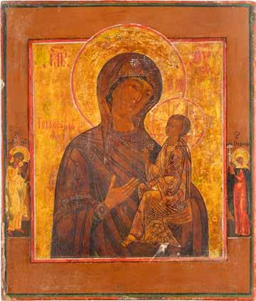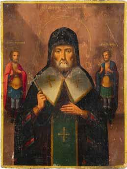 TWO ICONS SHOWING ST. NICHOLAS OF MYRA AND THE POKROV Russian, 19th century Tempera on wood panels. Losses. 31.2 x