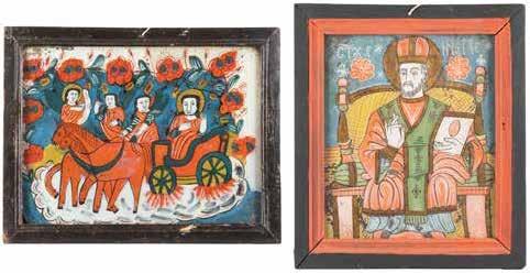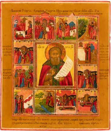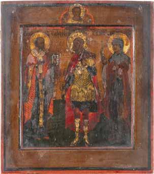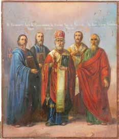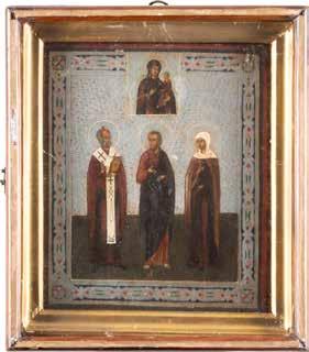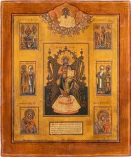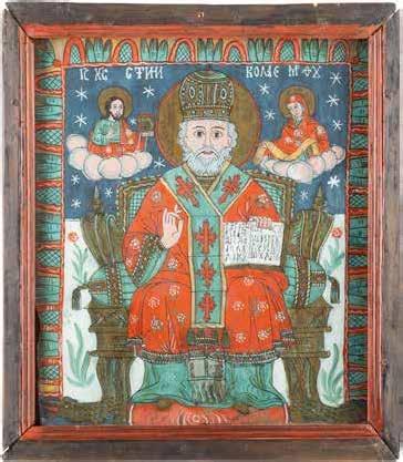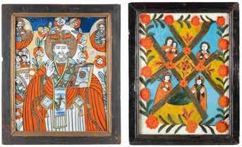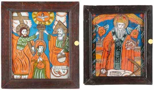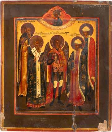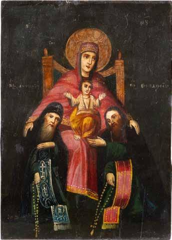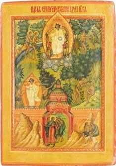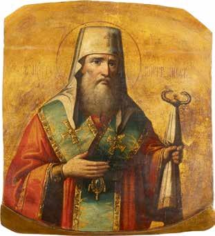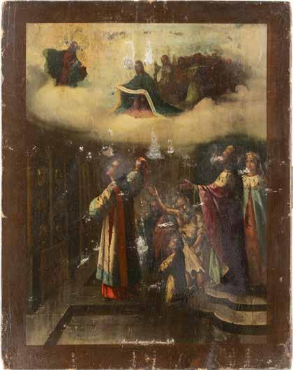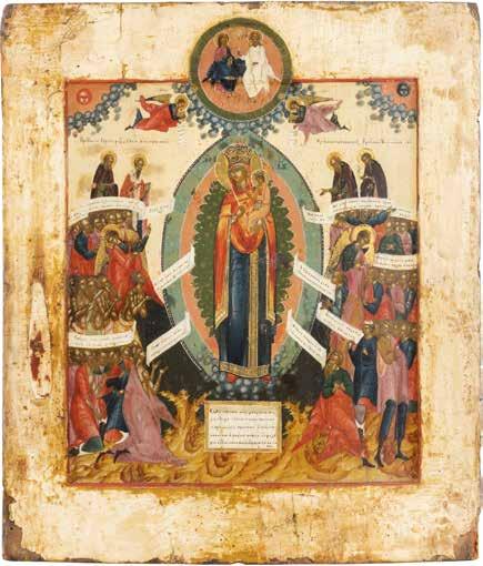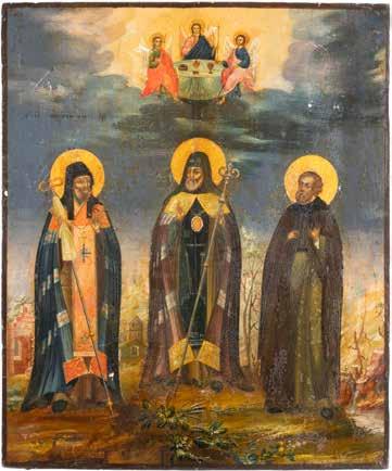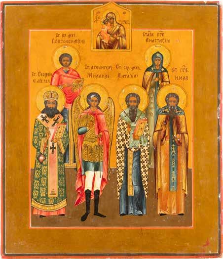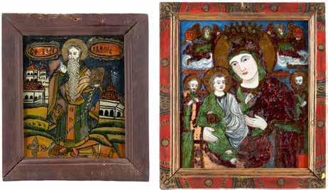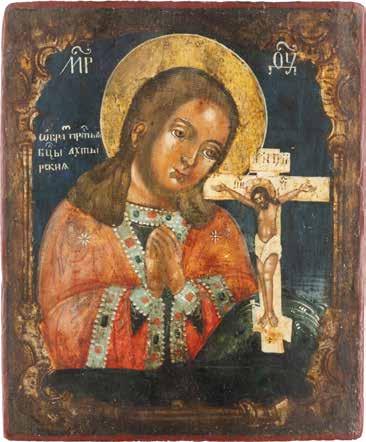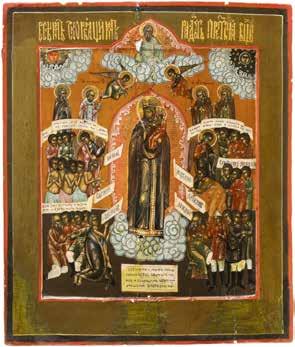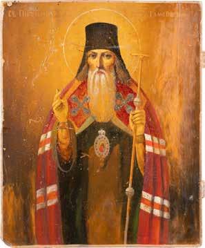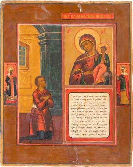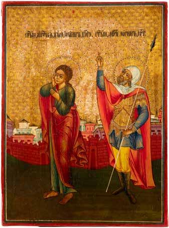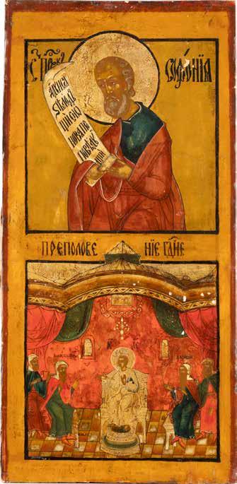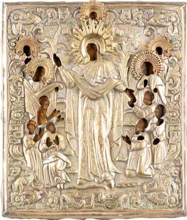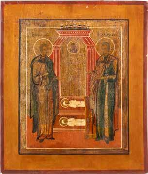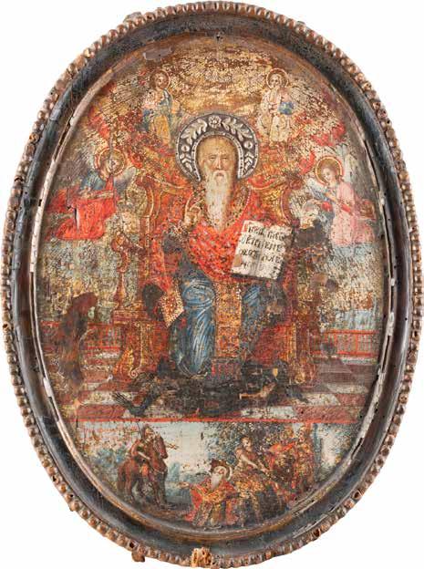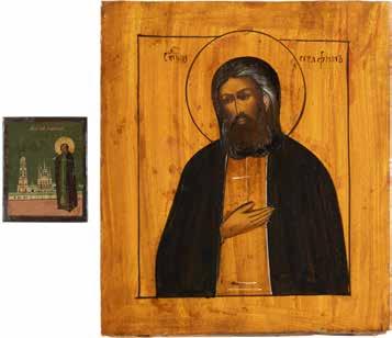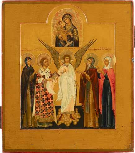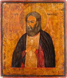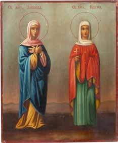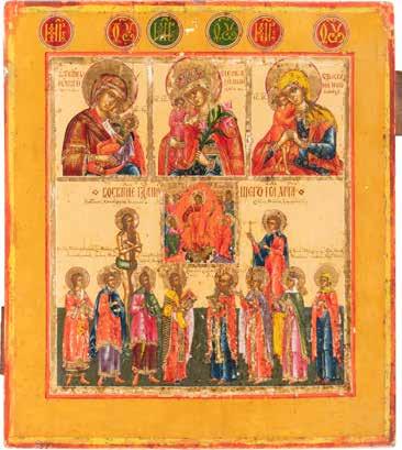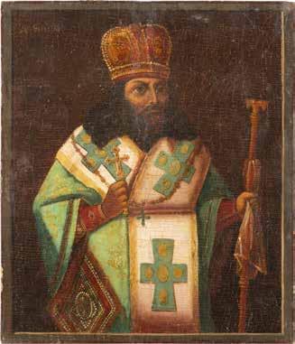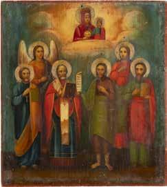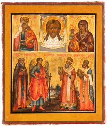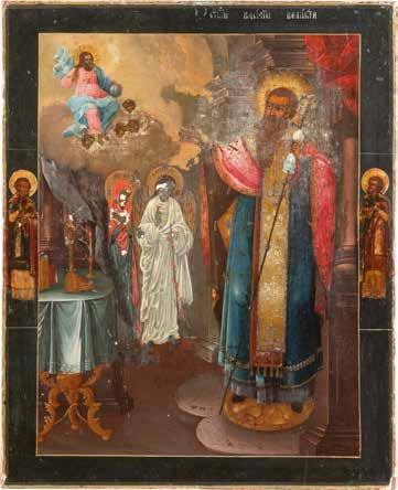 TWO ICONS SHOWING ST. NICHOLAS OF MYRA AND THE POKROV Russian, 19th century Tempera on wood panels. Losses. 31.2 x