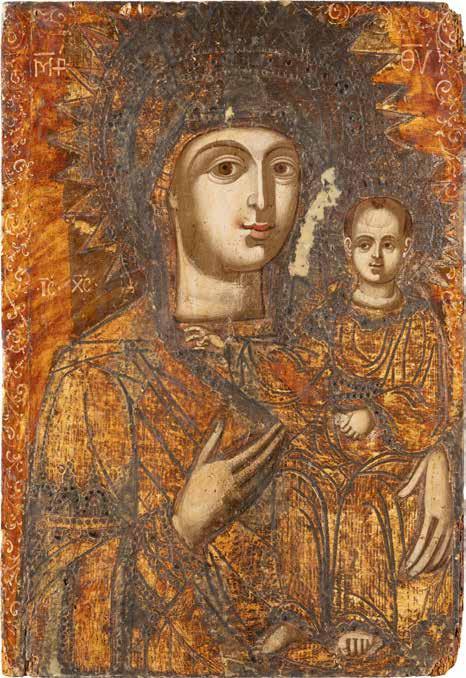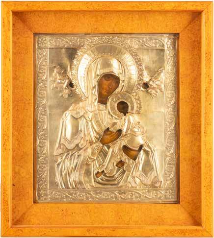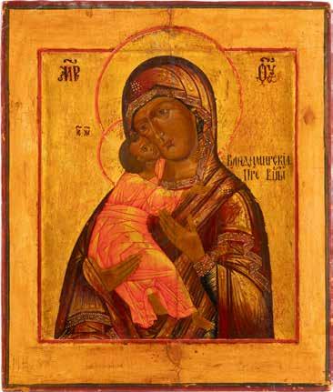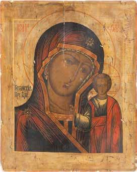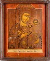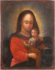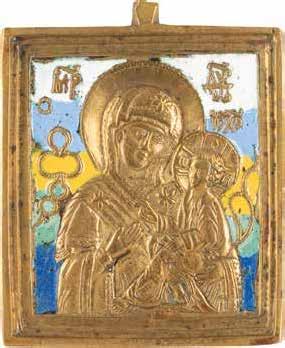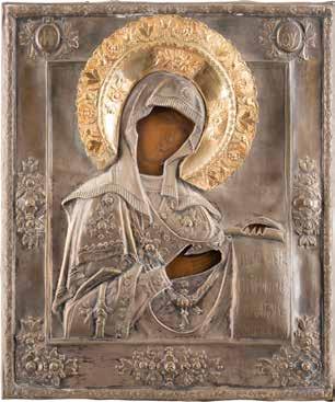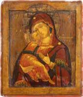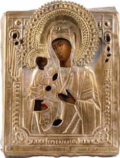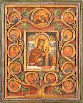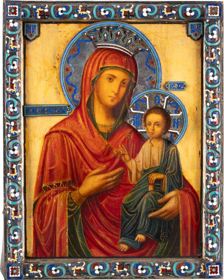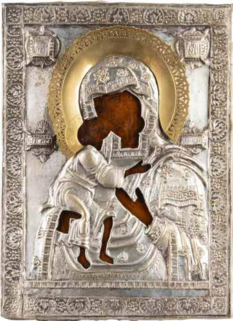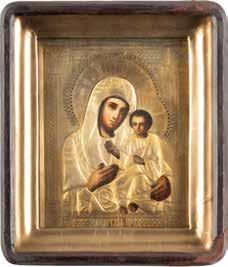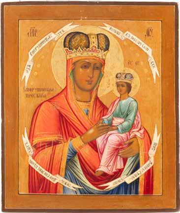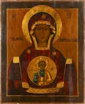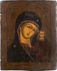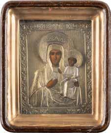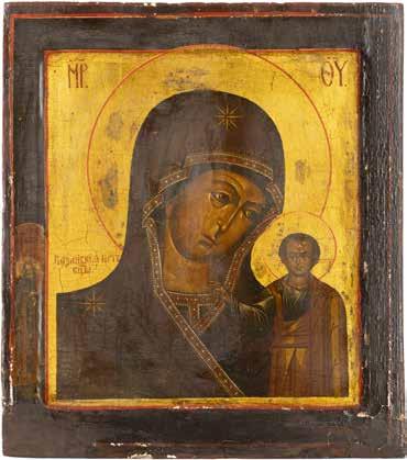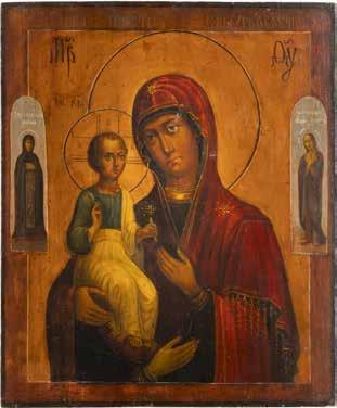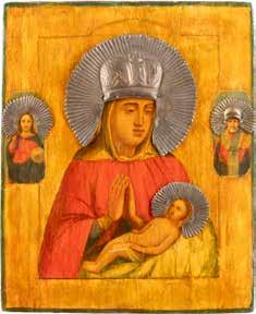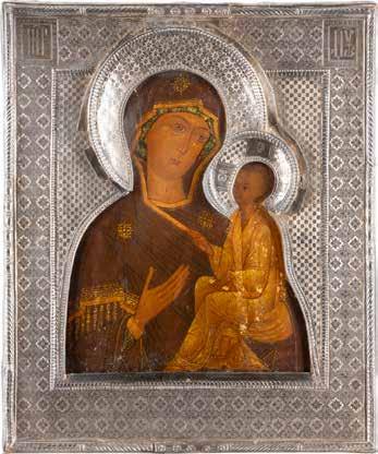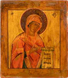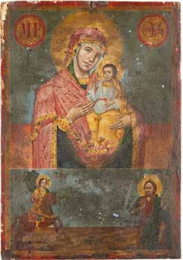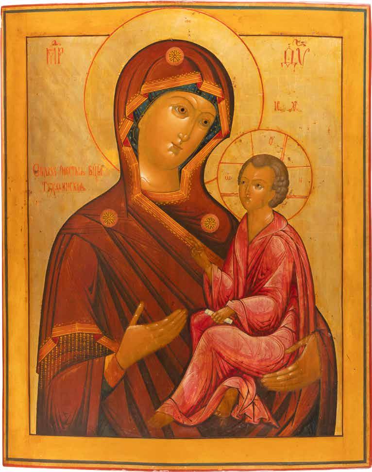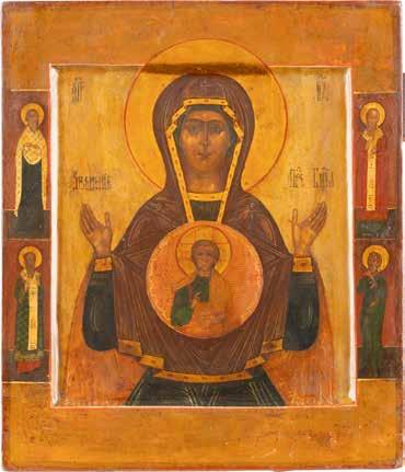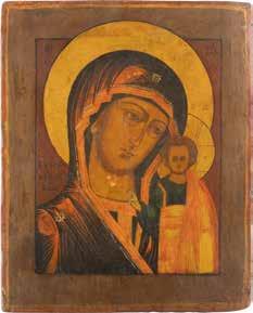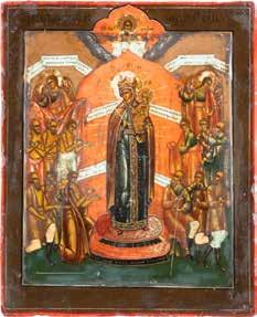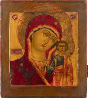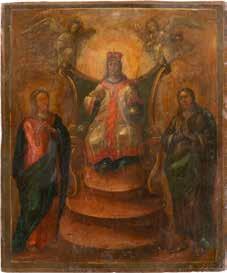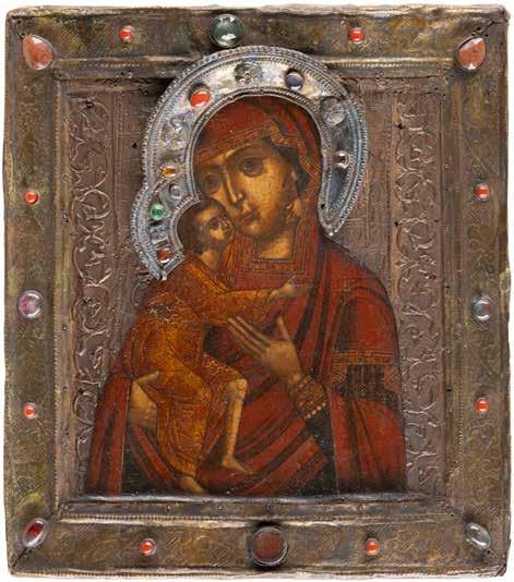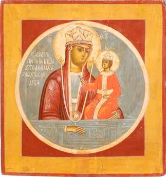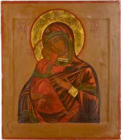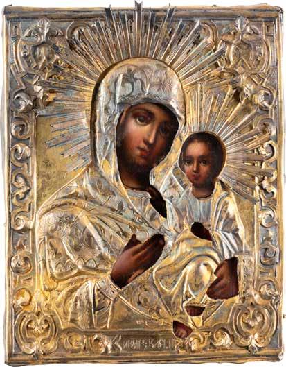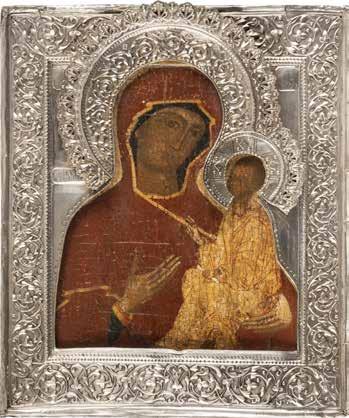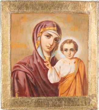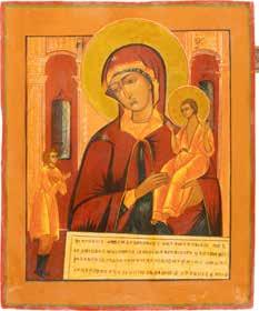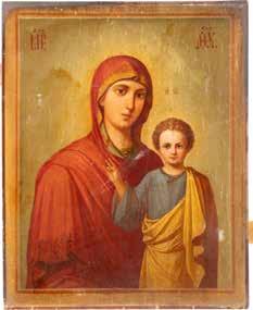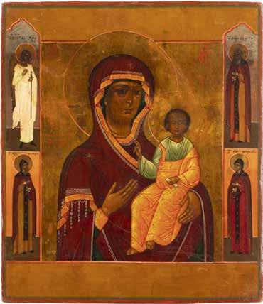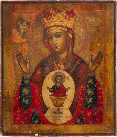 A SMALL ICON SHOWING THE SMOLENSKAYA MOTHER OF GOD Russian, 19th century Tempera on wood panel. Traces of gilding. Partially repainted in recent decades. 22.5 x 17.7 cm (without frame).