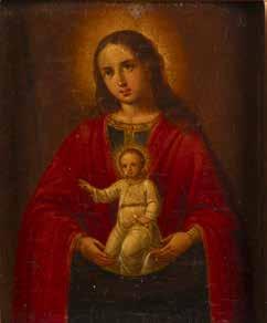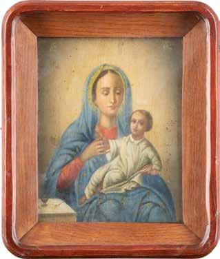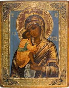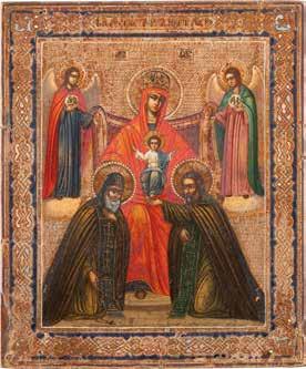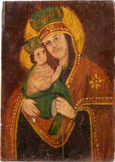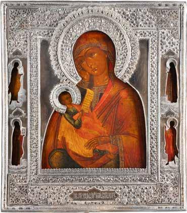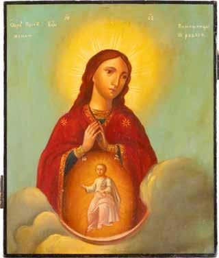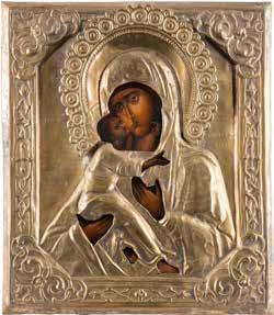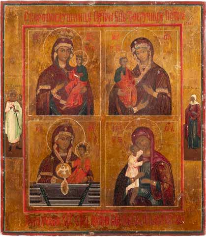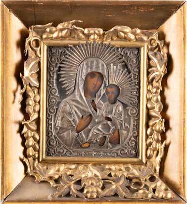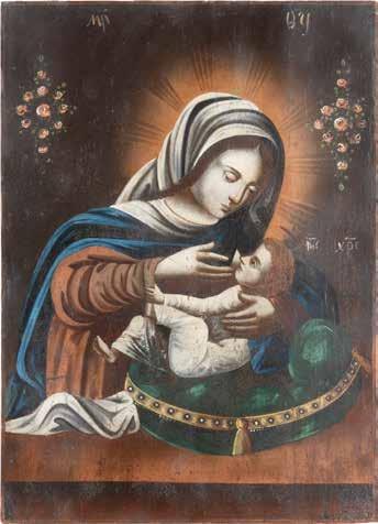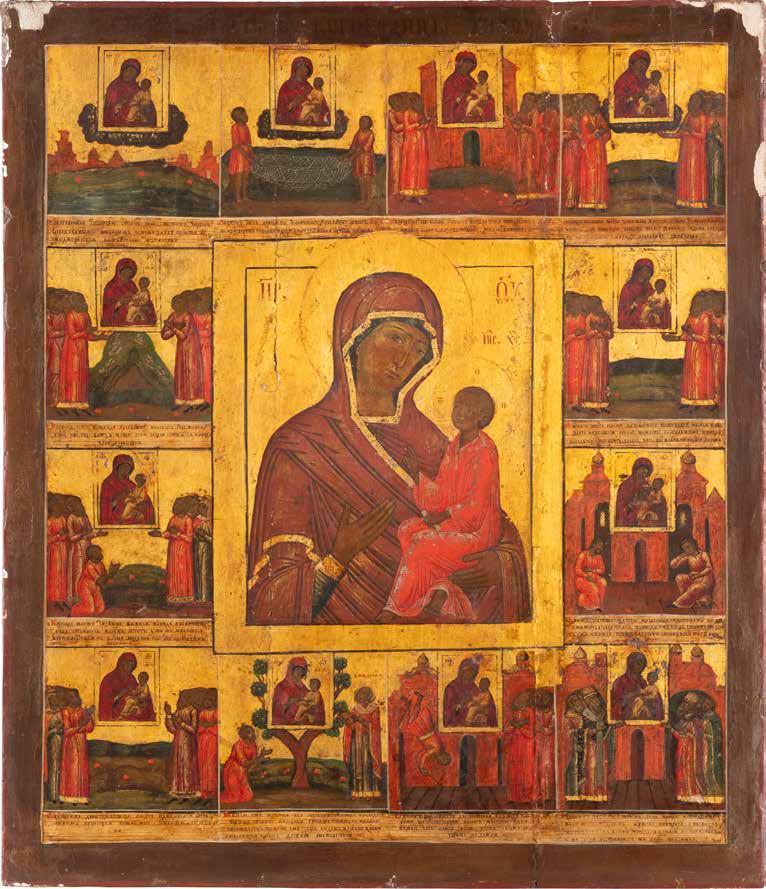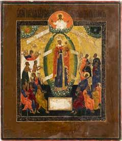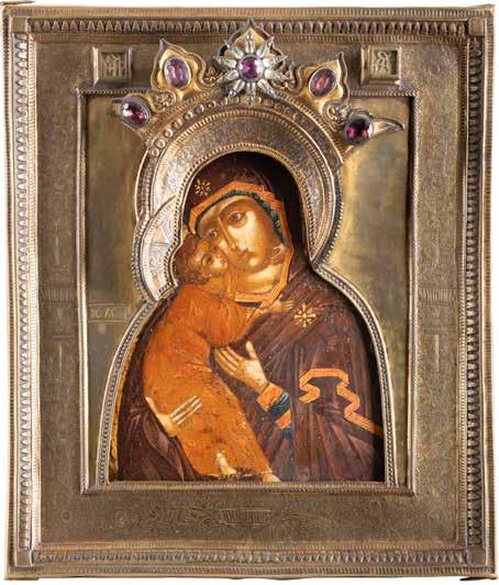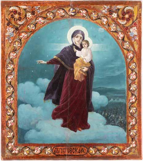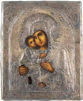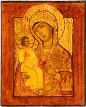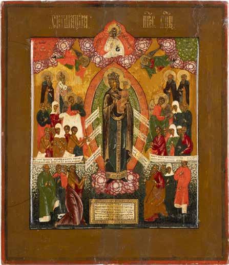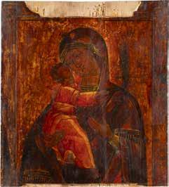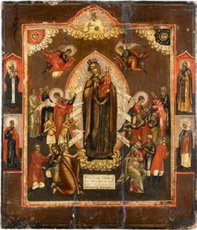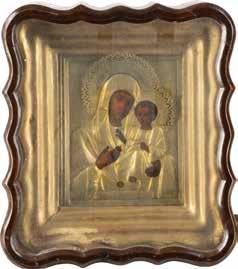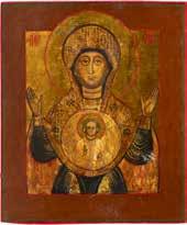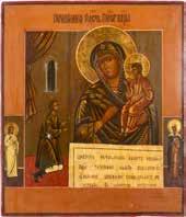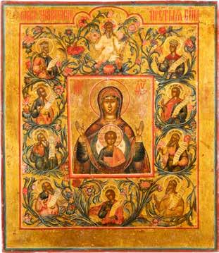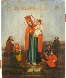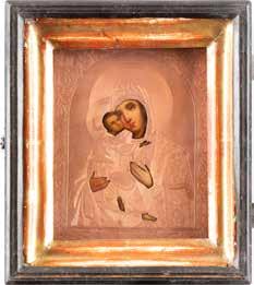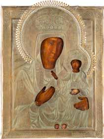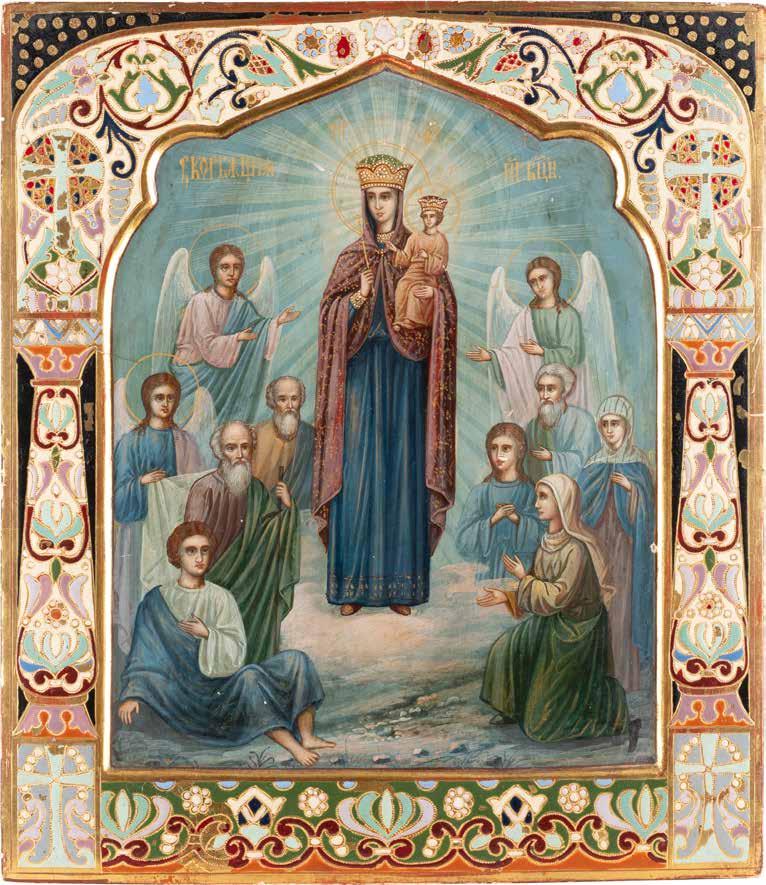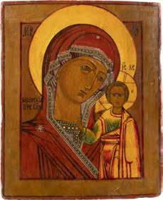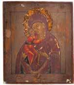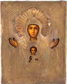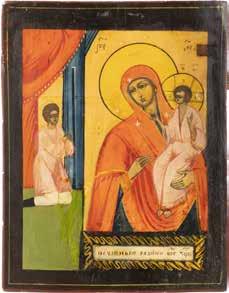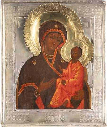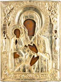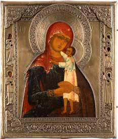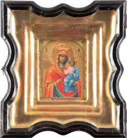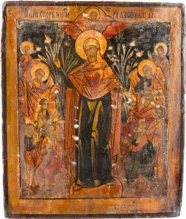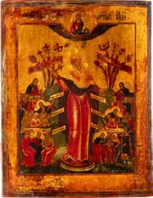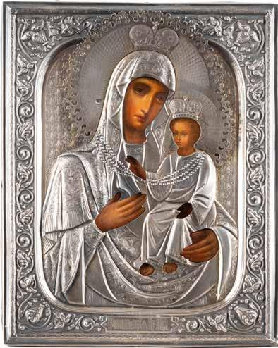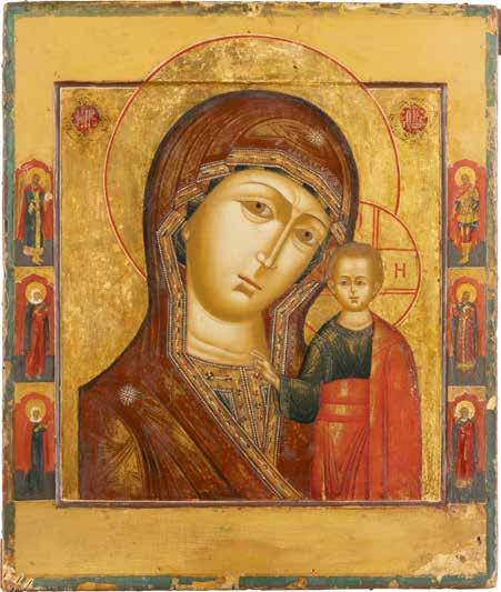 A SMALL ICON SHOWING THE SMOLENSKAYA MOTHER OF GOD Russian, 19th century Tempera on wood panel. Traces of gilding. Partially repainted in recent decades. 22.5 x 17.7 cm (without frame).