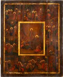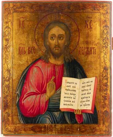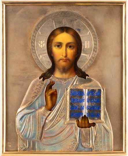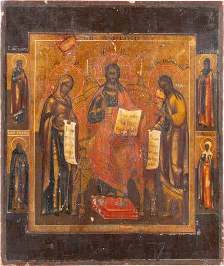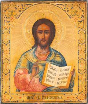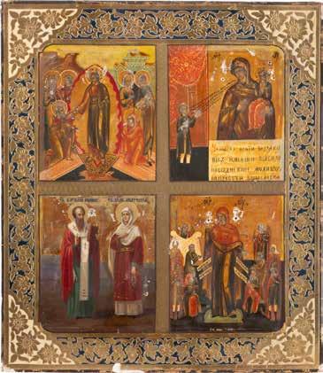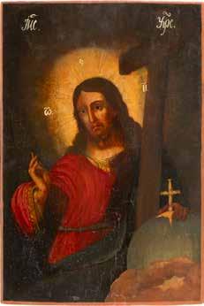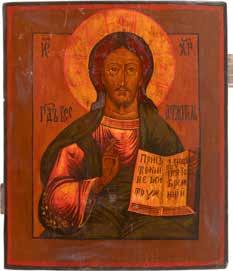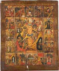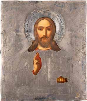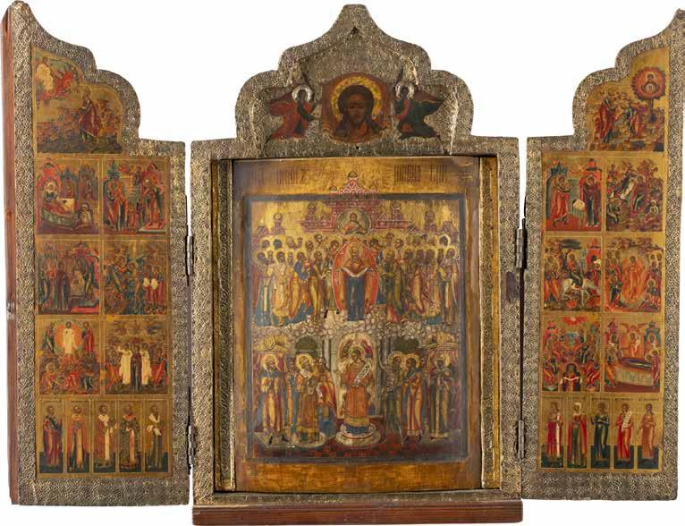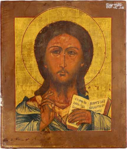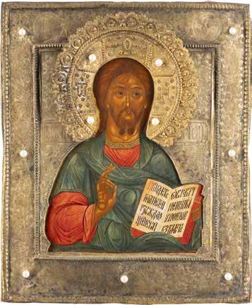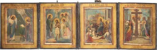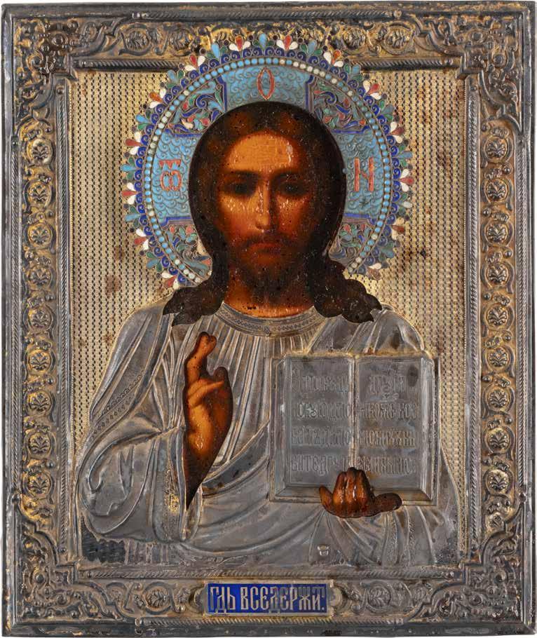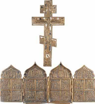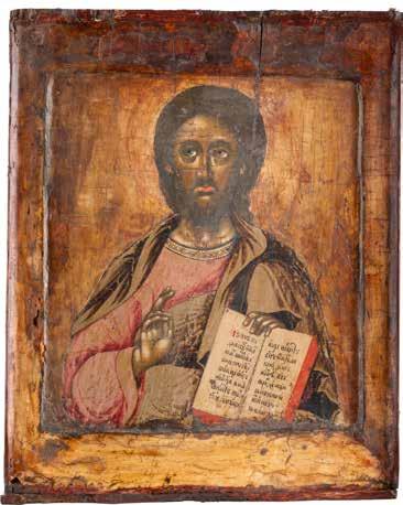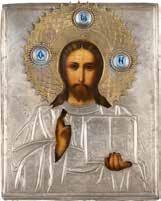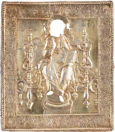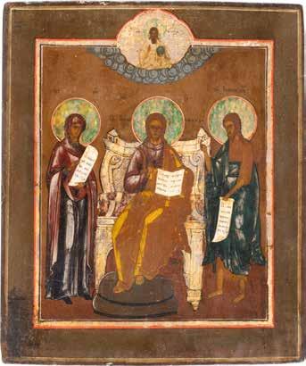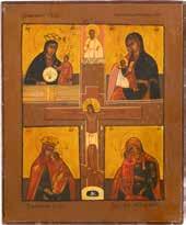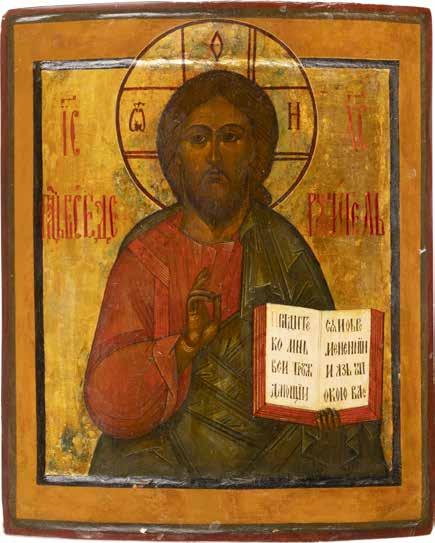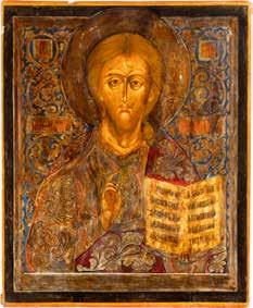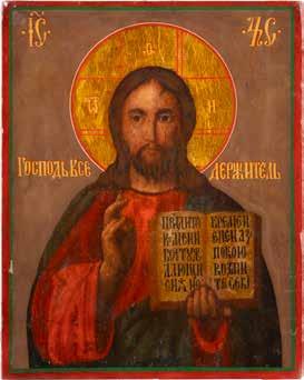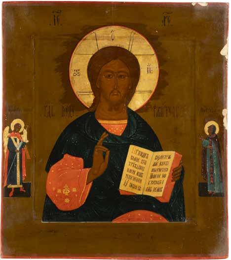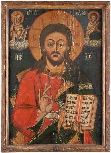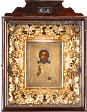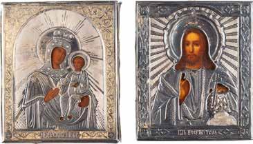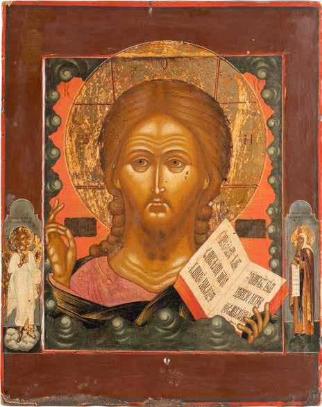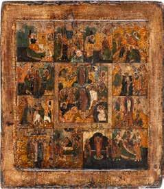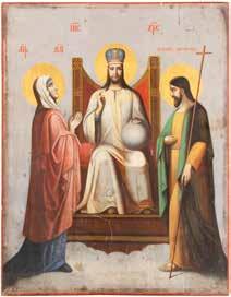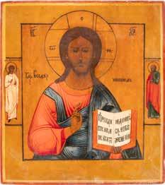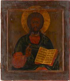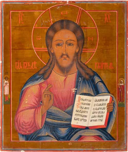 TWO SMALL ICONS: A QUADRI-PARTITE ICON AND CHRIST PANTOKRATOR WITH OKLAD Russian, 19th century Tempera oil on wood panels. Overlaid with a brass oklad. Partially restored. 25 x 18 cm / 22.2 x 17.9 cm. € 120,-