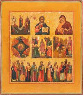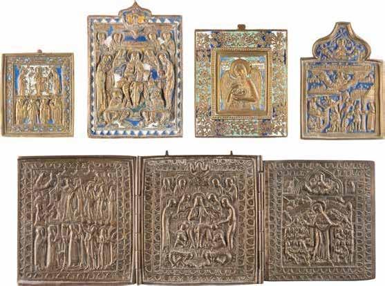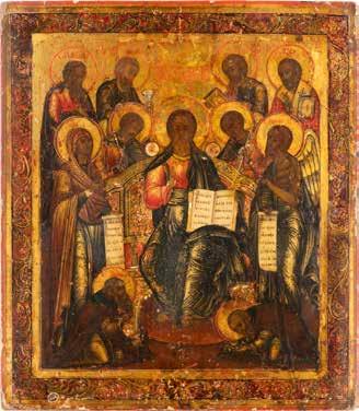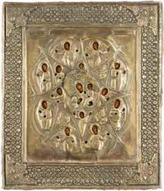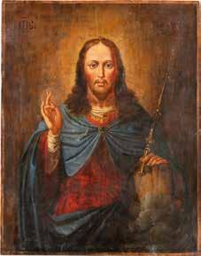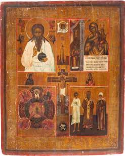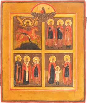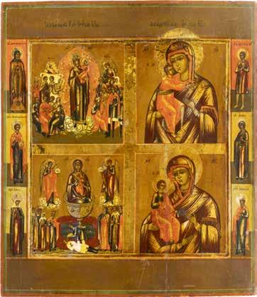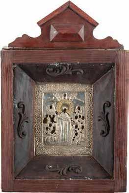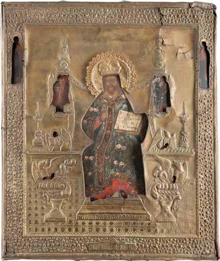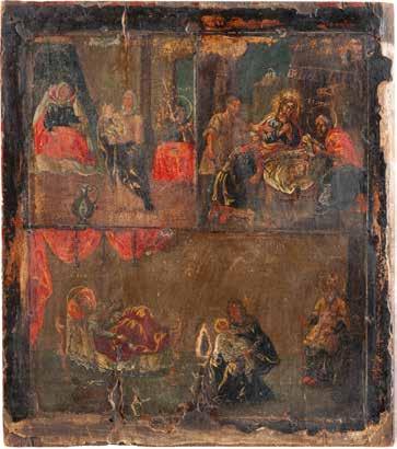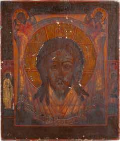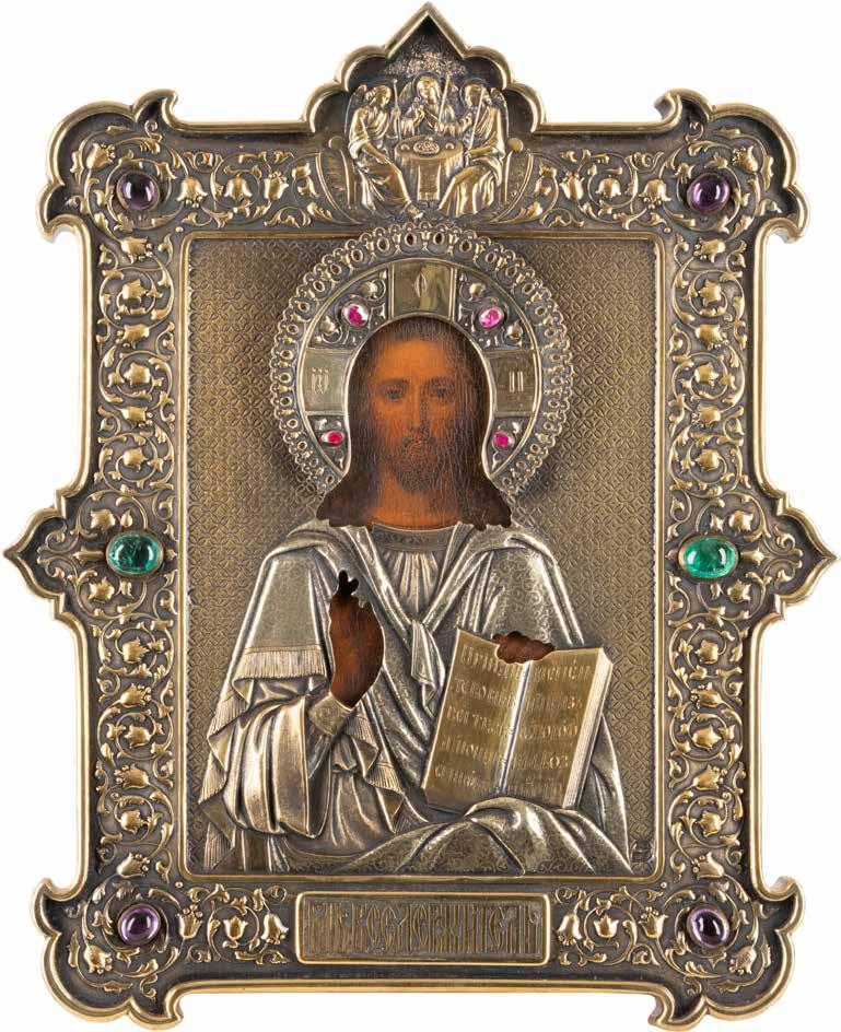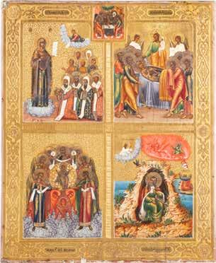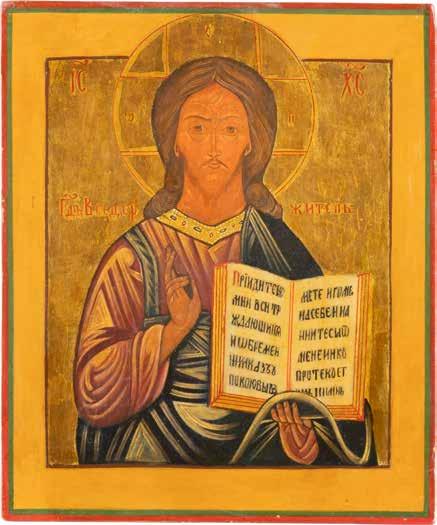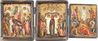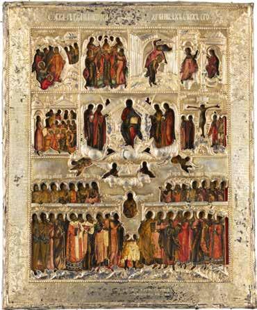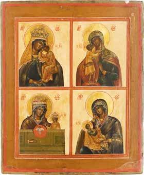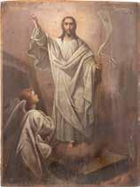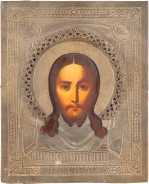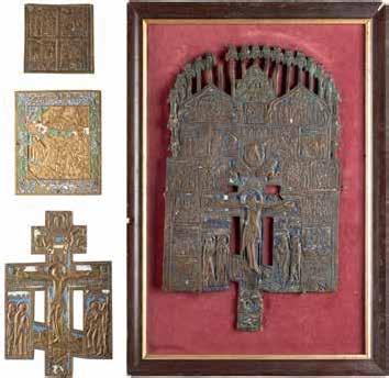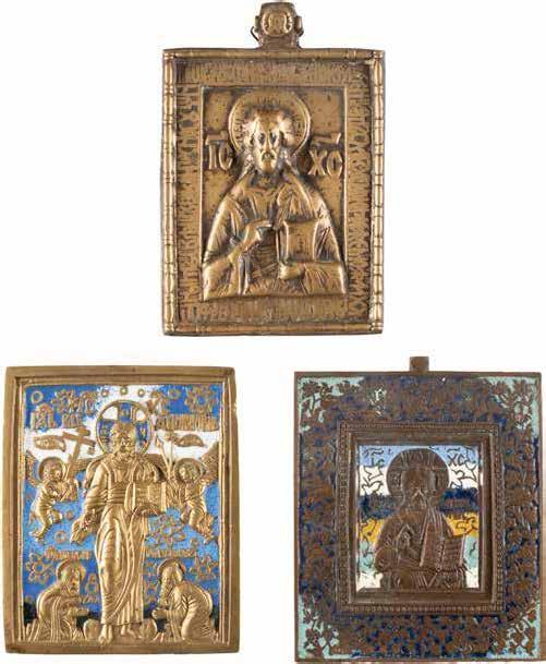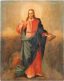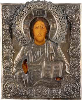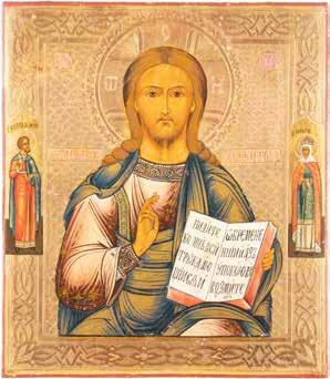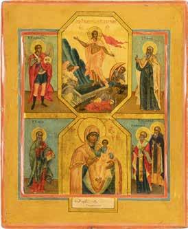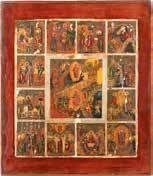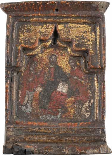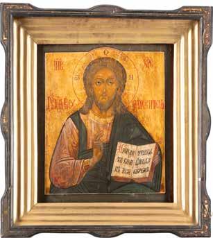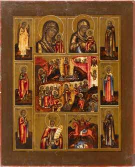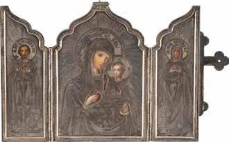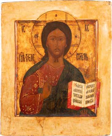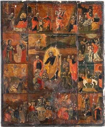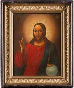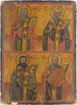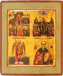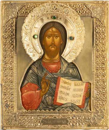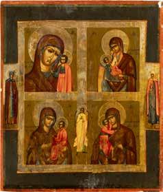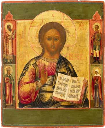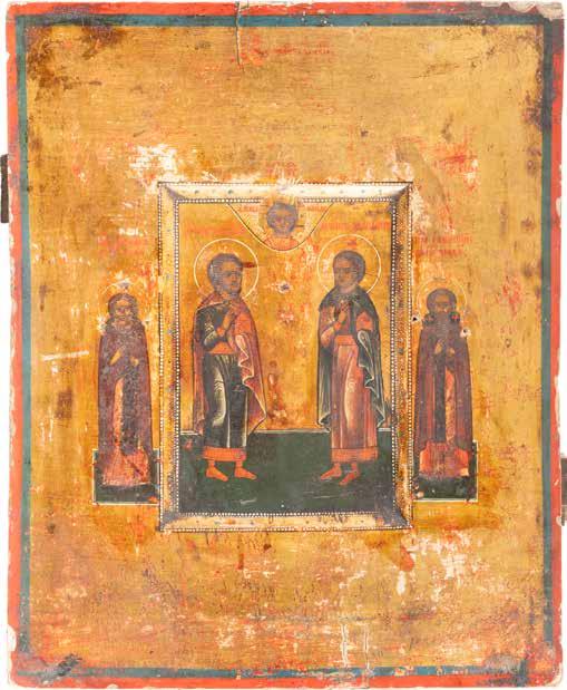 TWO SMALL ICONS: A QUADRI-PARTITE ICON AND CHRIST PANTOKRATOR WITH OKLAD Russian, 19th century Tempera oil on wood panels. Overlaid with a brass oklad. Partially restored. 25 x 18 cm / 22.2 x 17.9 cm. € 120,-
