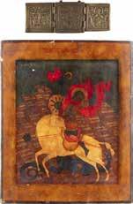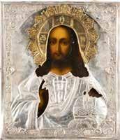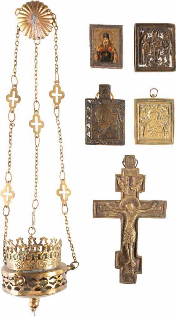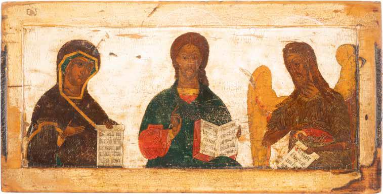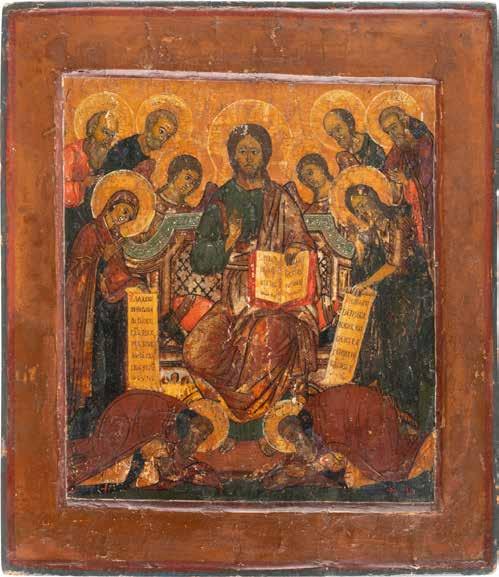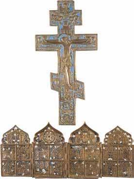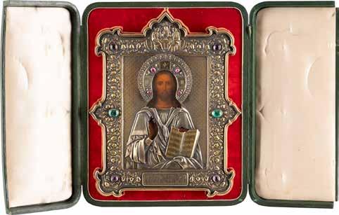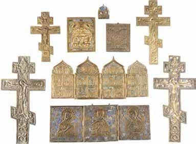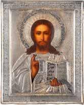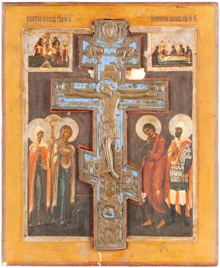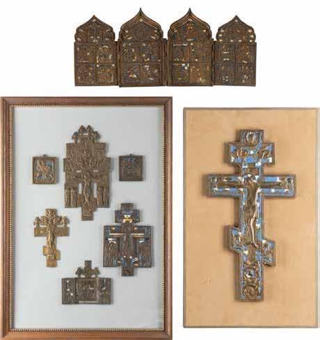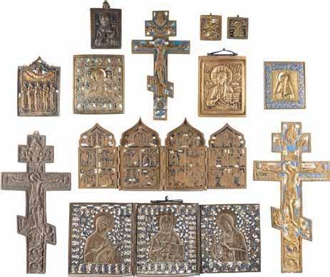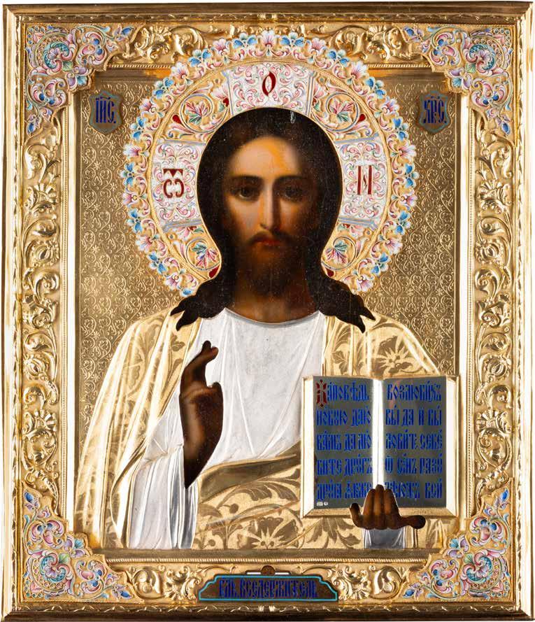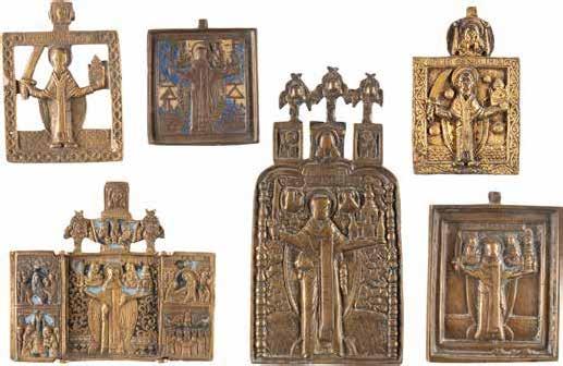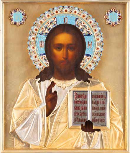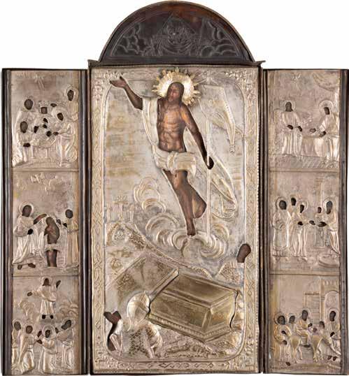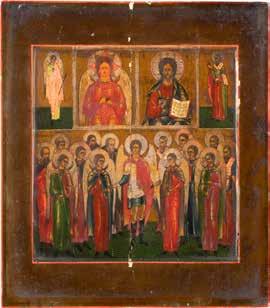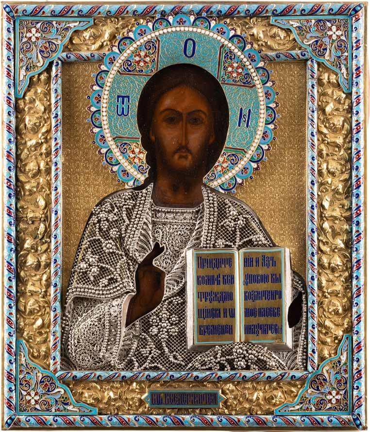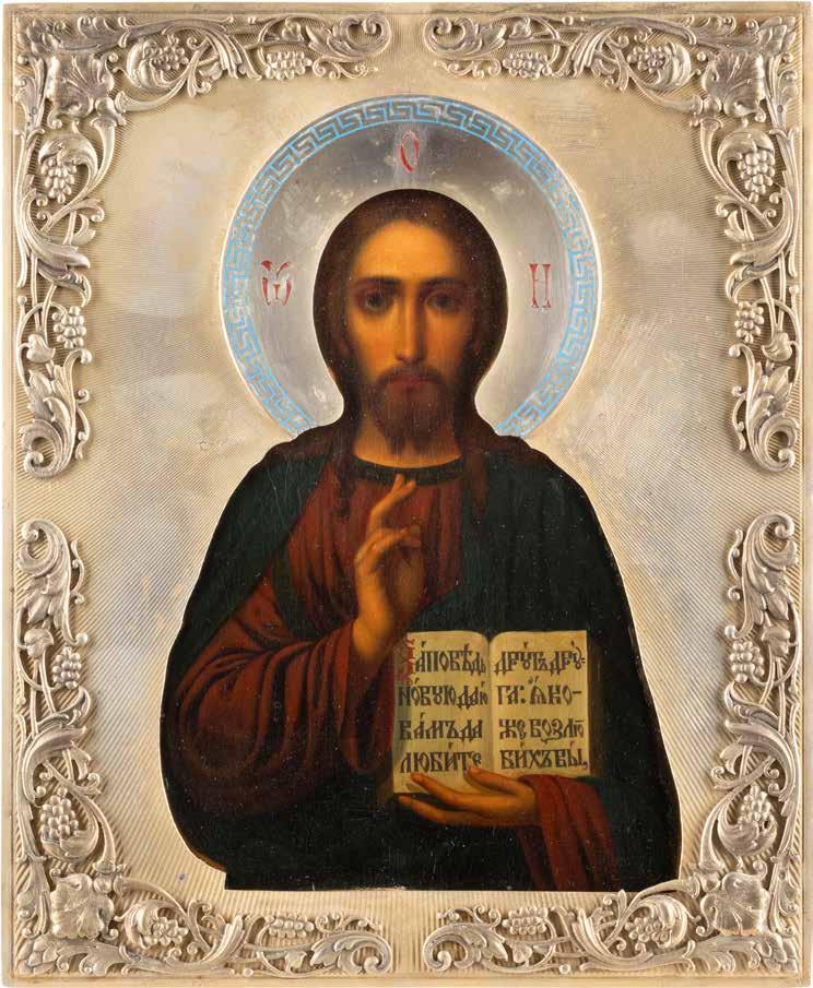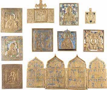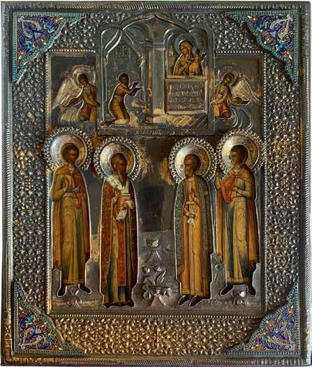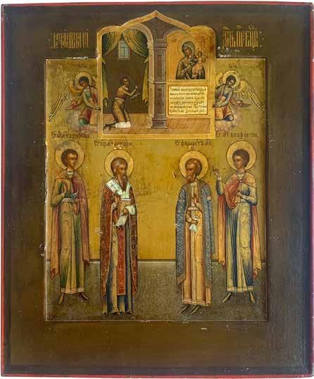 TWO SMALL ICONS: A QUADRI-PARTITE ICON AND CHRIST PANTOKRATOR WITH OKLAD Russian, 19th century Tempera oil on wood panels. Overlaid with a brass oklad. Partially restored. 25 x 18 cm / 22.2 x 17.9 cm. € 120,-