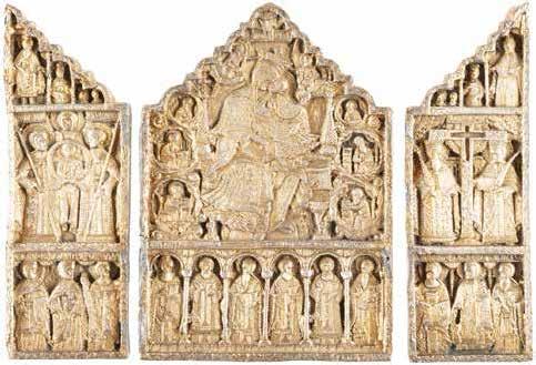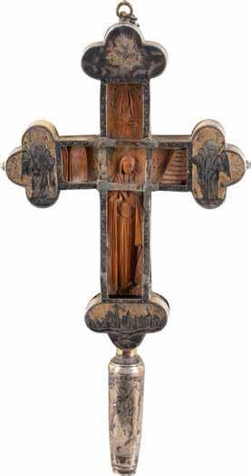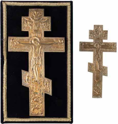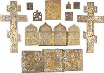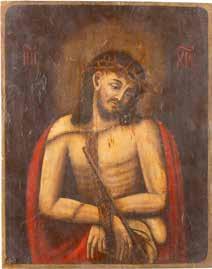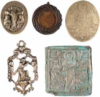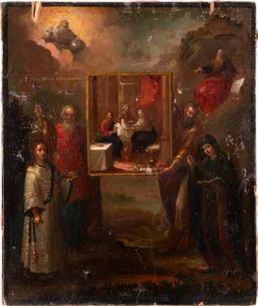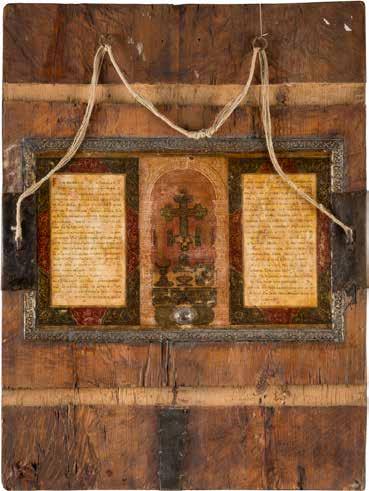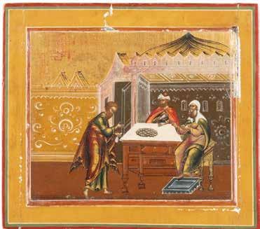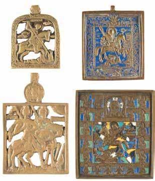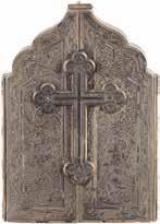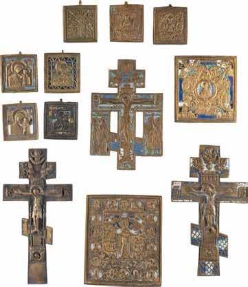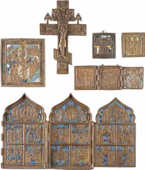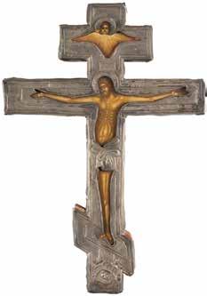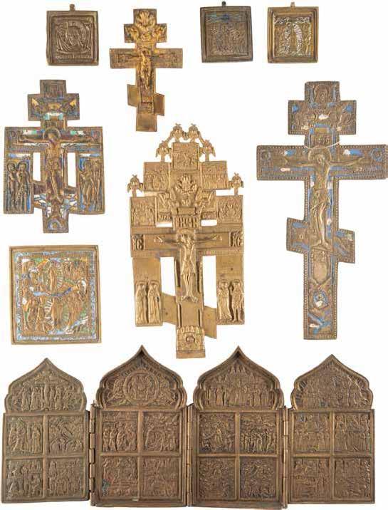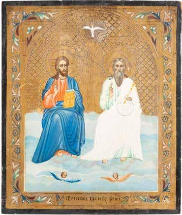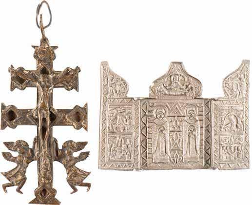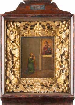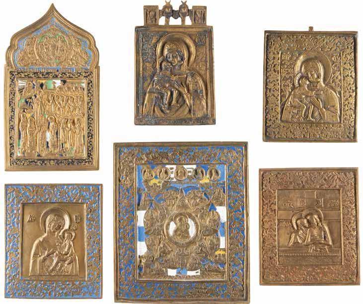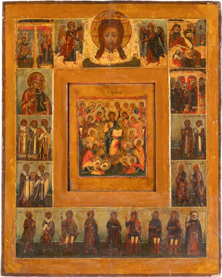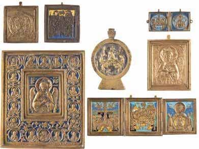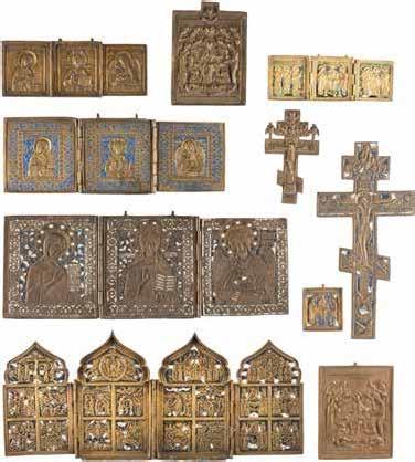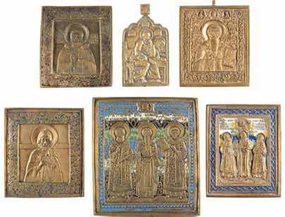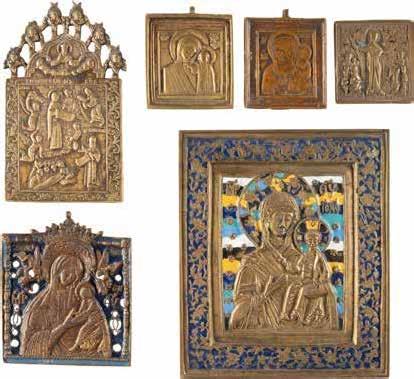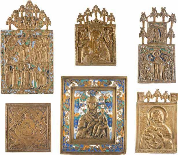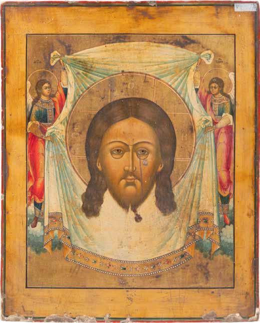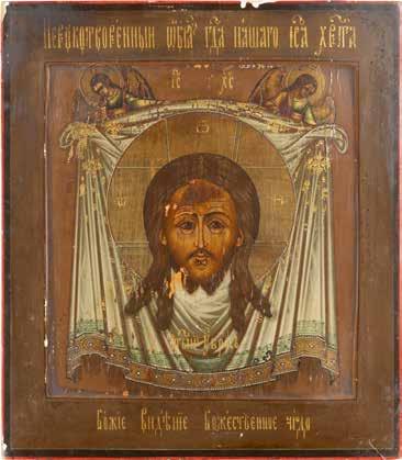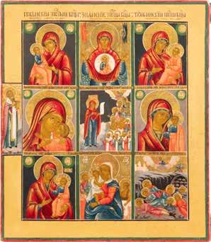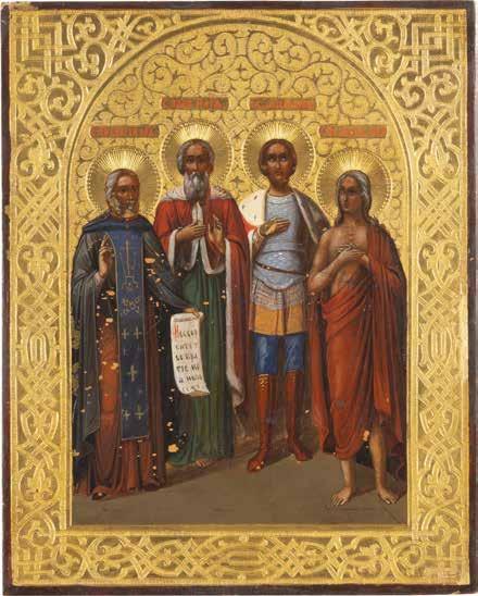 TWO SMALL ICONS: A QUADRI-PARTITE ICON AND CHRIST PANTOKRATOR WITH OKLAD Russian, 19th century Tempera oil on wood panels. Overlaid with a brass oklad. Partially restored. 25 x 18 cm / 22.2 x 17.9 cm. € 120,-