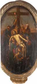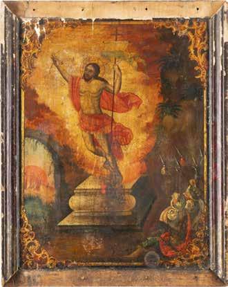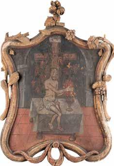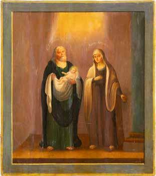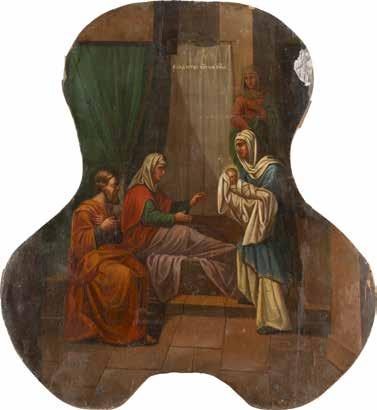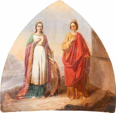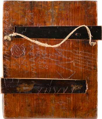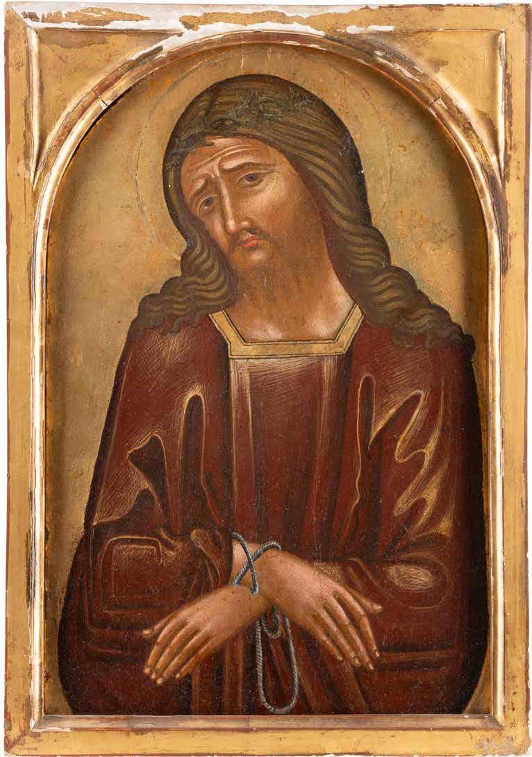 Eitempera / Ölmalerei auf Holz. 26,5 x 21,3 cm / 34,3 x 31,3 cm. Besch., Substanzverluste.