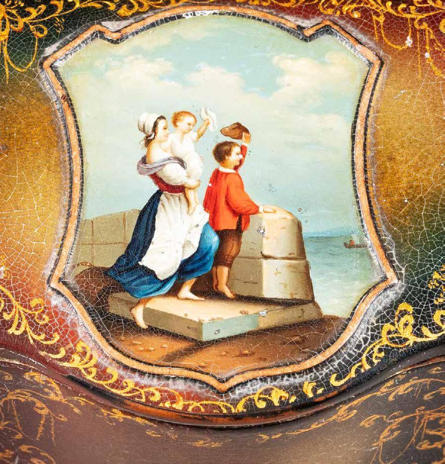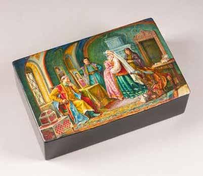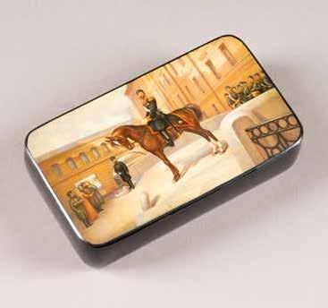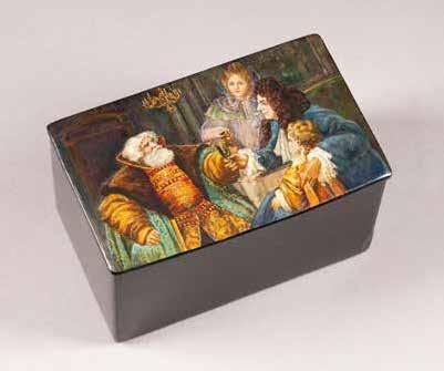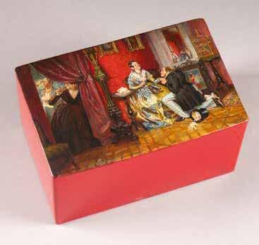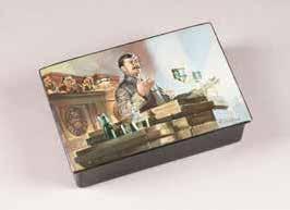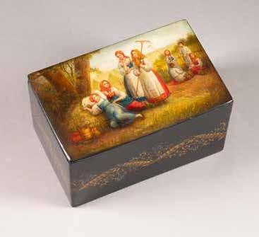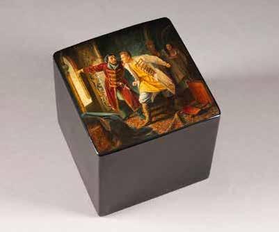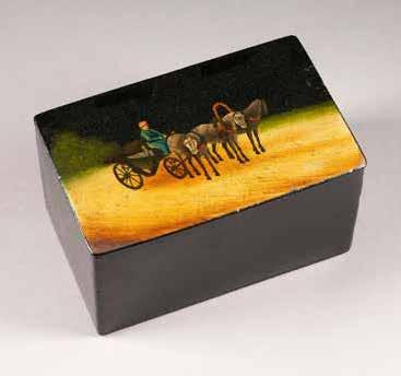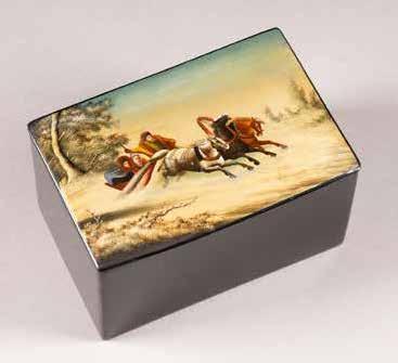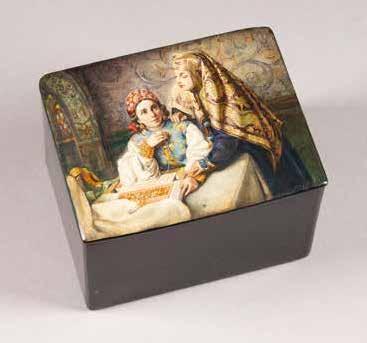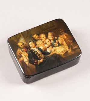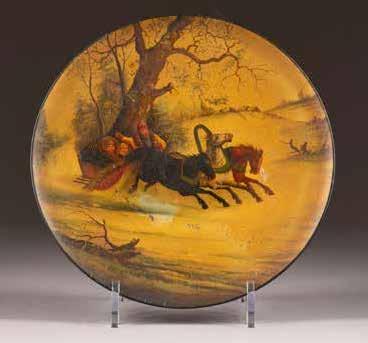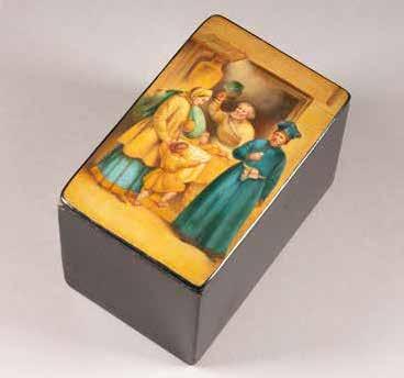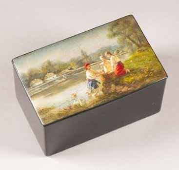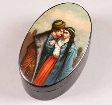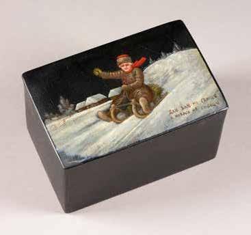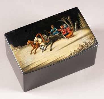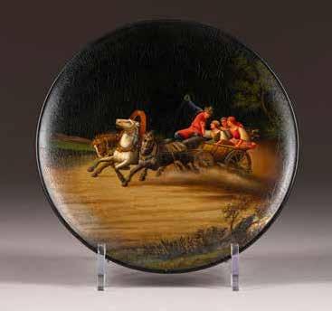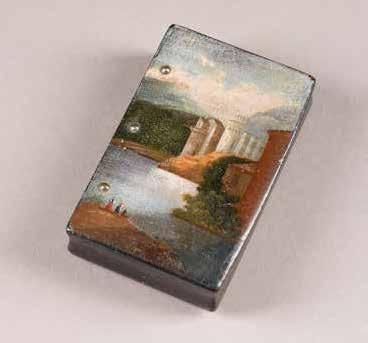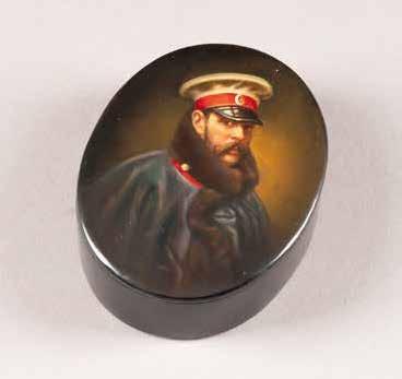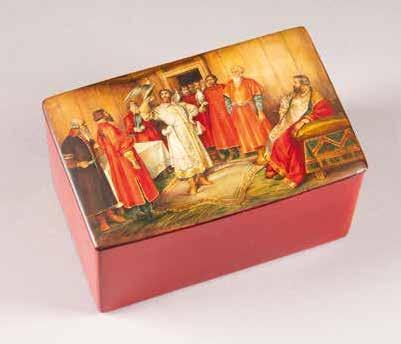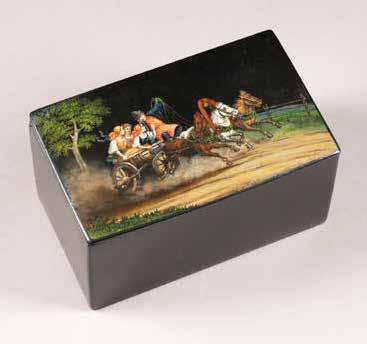 Russian, Tobolsk, late 18th century Circular, the cover depicting a plan of the city of Tobolsk, with views of architectural landmarks and the Irtysh River, on a stippled ground, within a rocaille border, the base similarly decorated and depicting the city of Yeniseisk, the sides depicting the cities of Tiumen, Tomsk, Tara, and Turinsk. Unmarked. Diam. 10.8 cm, 258 gr. € 700,–