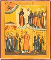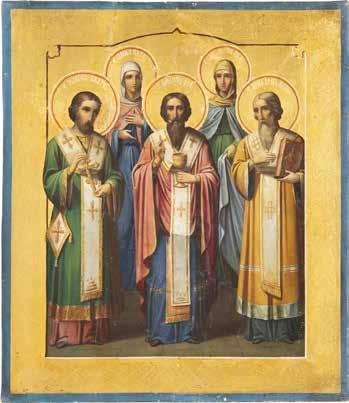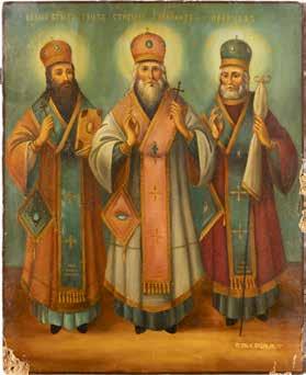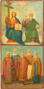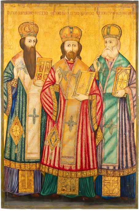 TWO ICONS SHOWING THREE HIERARCHS OF ORTHODOXY AND THE POKROV