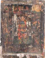 Tempera on wood panels. The background made of silver, covered by a golden lacquer. Damages, restorations. 28.2 x 21.8 cm / 36 x 28.5 cm.