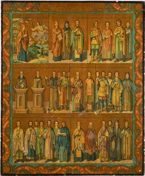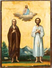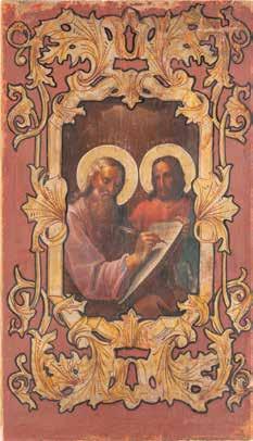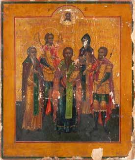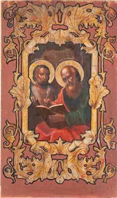 TWO ICONS SHOWING THE APOSTLES PETER AND PAUL AND THREE SELECTED SAINTS