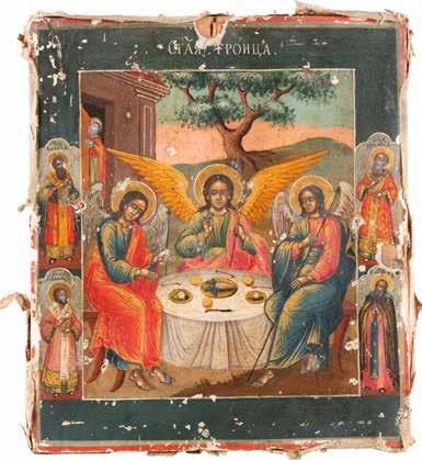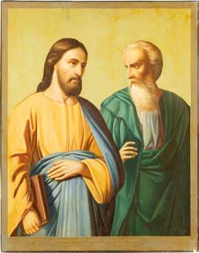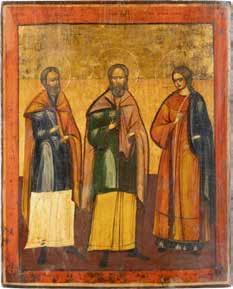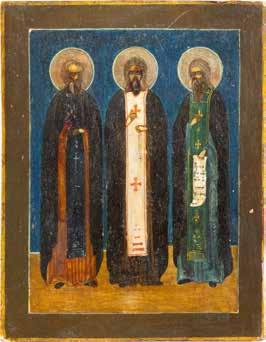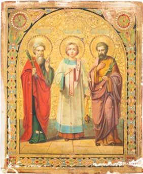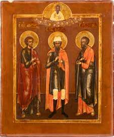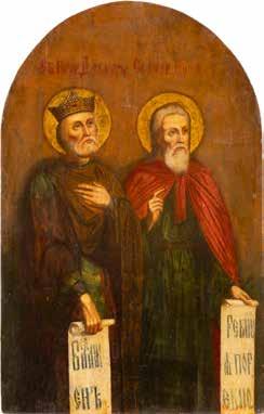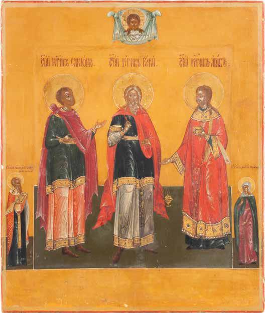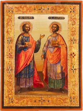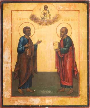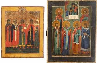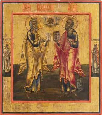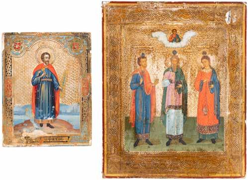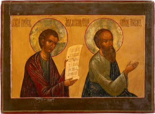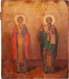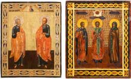 2891 ZWEI IKONEN: PETRUS UND PAULUS UND DREI HEILIGE Russland, Ende 19. Jh.