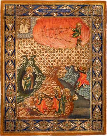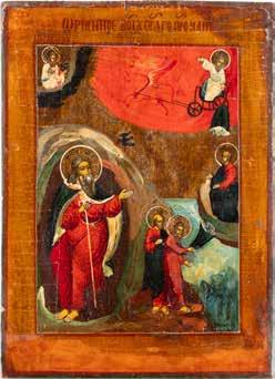 A LARGE ICON SHOWING THE PROPHET ELIJAH AND HIS FIERY ASCENT TO HEAVEN 2nd half 20th century