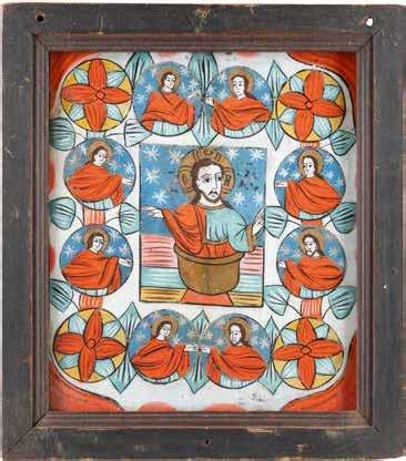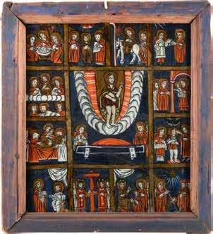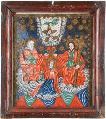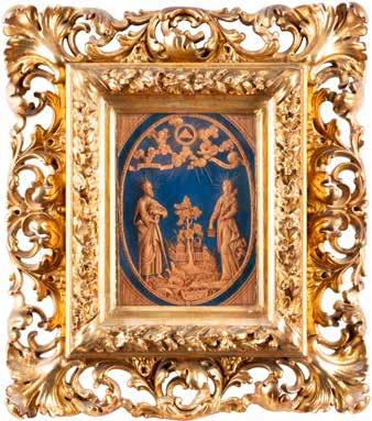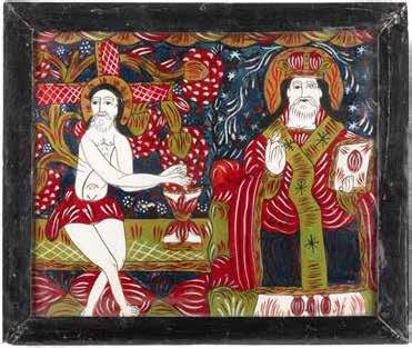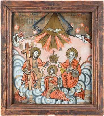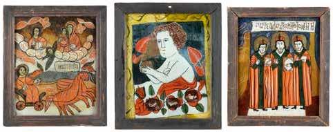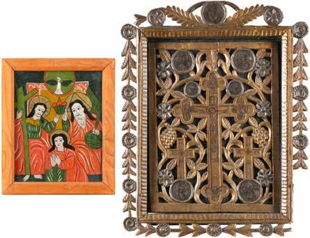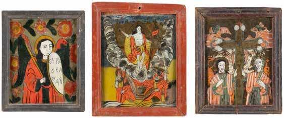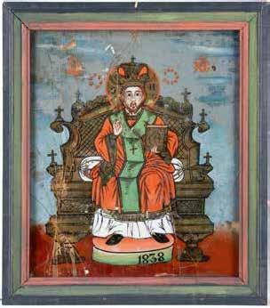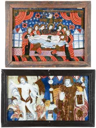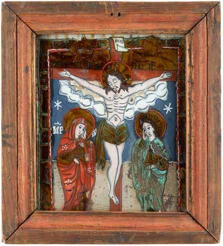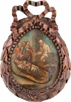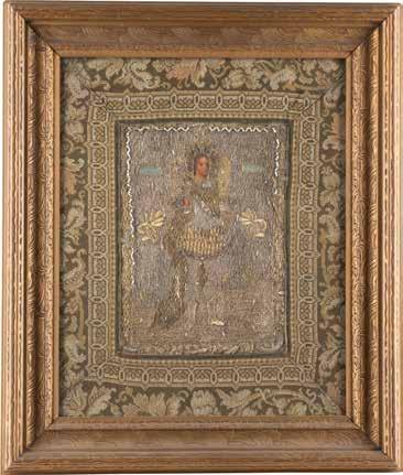 Eitempera auf Kreidegrund auf Holz, partielle Versilberung goldfarben lasiert. 28,2 x 21,8 cm 36 x 28,5 cm. Besch., rest.