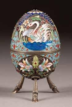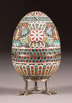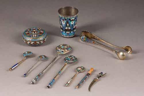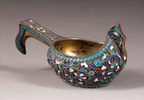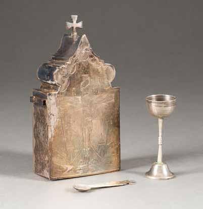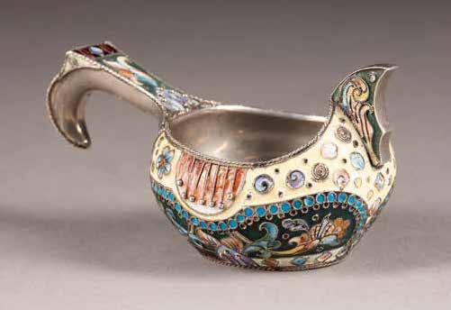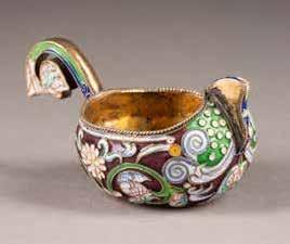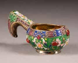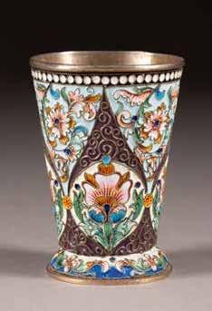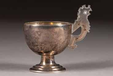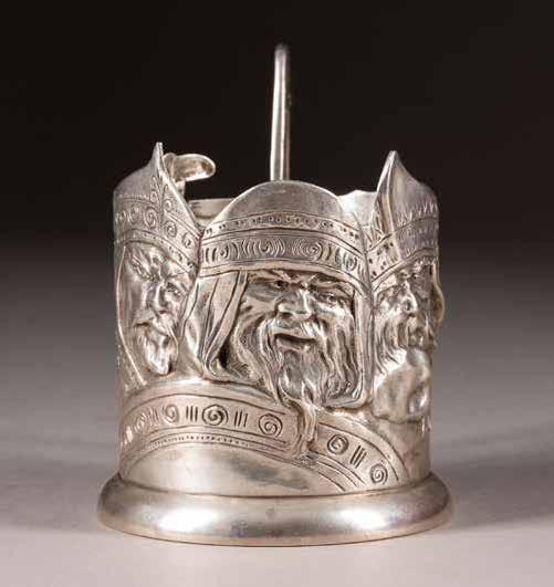 Silber, getrieben und graviert. H. 4,6 cm, 44 g. Punziert mit Beschaumarke und Meisterzeichen 'MG' in Kyrillisch.