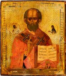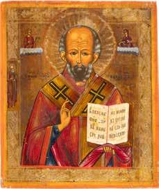 AN ICON SHOWING ST. NICHOLAS OF MYRA WITH RIZA 2nd half 20th century