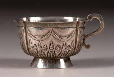Lobed, chased with foliage. Unmarked. 4.2 cm high, 41 gr.
