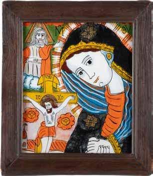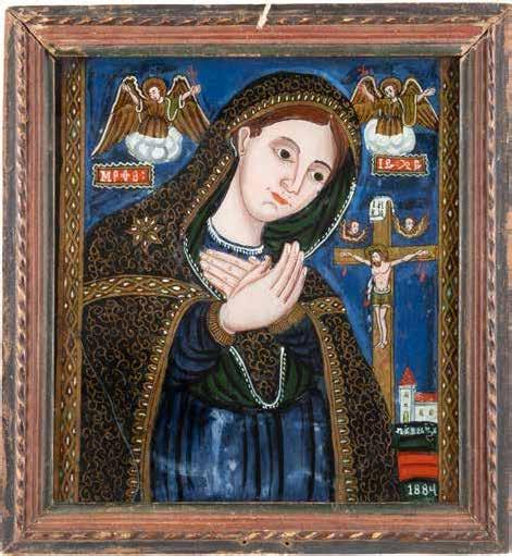 Holztafeln, Ölmalerei auf Leinwand, Metallriza mit getriebenem Dekor. 44 x 34,2 cm. Verso handschriftliche Beschriftung mit Signatur ‚Hanna Kostecka‘.