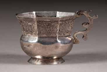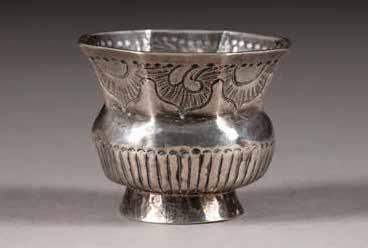 Silber, getrieben und graviert. H. 4,2 cm, 41 g.