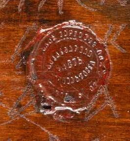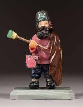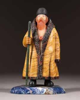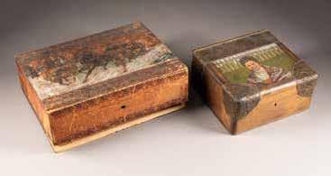 Holz, teils geschnitzt, Metalloklade. 9,3 x 6,2 cm / 10,6 x 4,7 cm.