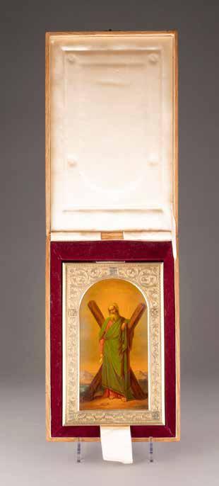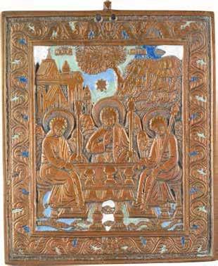 2. Hälfte 20. Jh. Ölmalerei auf Holz, verso Samtabdeckung. Metalloklad, Email. 27 x 22 cm.
