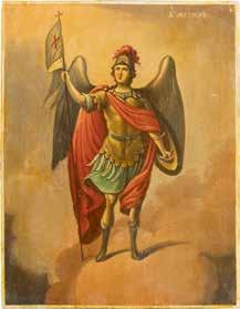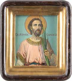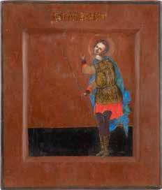 Eitempera auf Kreidegrund auf Holz, partielle Vergoldung. 17,7 x 14,2 cm / 17,5 x 13,8 cm. TWO SMALL ICONS SHOWING THE ARCHANGEL MICHAEL AND ST. NICHOLAS OF MYRA