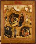 Tempera on wood panel. Against a gold background. Metal basma. Minor losses. 20.5 x 27.4 cm.