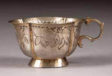 Silver, getrieben und innen vergoldet. H. 7,8 cm, 77 g. Punziert mit Stadtmarke, Beschaumeisterzeichen und Meistermarke.