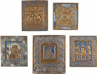 FIVE OKLADS OF ICONS SHOWING THE MANDYLION, THE VLADIMIRSKAYA MOTHER OF GOD, ST. NICHOLAS OF MYRA AND ST. JOHN, THEOLOGIAN IN SILENCE
