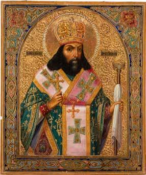 2902 IKONE MIT DEM HEILIGEN NIKOLAUS VON MYRA MIT RIZA