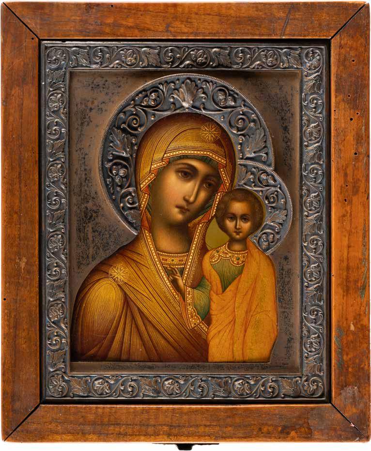 2903 IKONE MIT DER GOTTESMUTTER VON KASAN (KASANSKAJA) MIT CLOISONNÉ-EMAIL-OKLAD