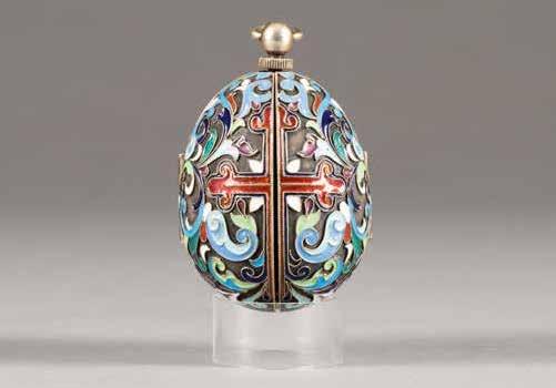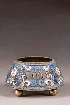 Of octagonal form, chased with flowers. Marked with assayer's mark and master's mark 'MG' in Cyrillic. 4.6 cm high, 44 gr.