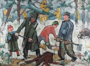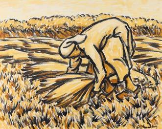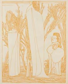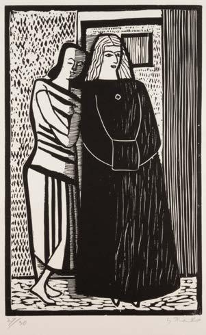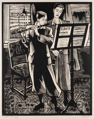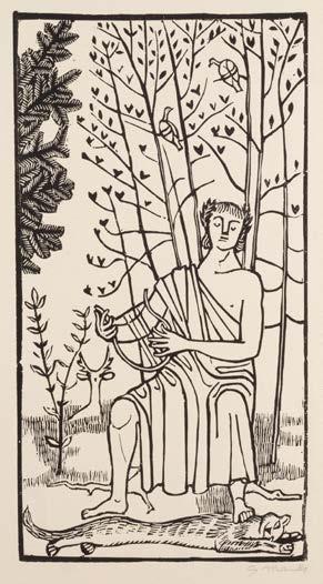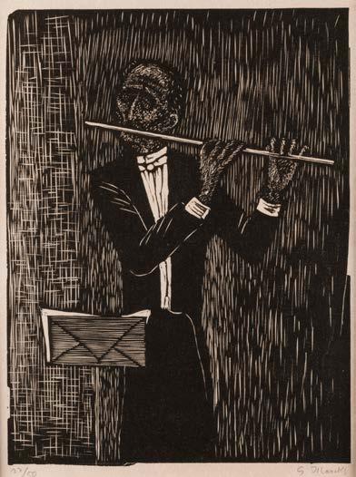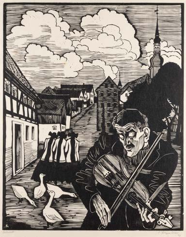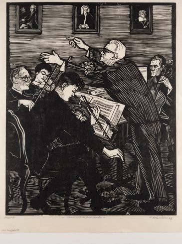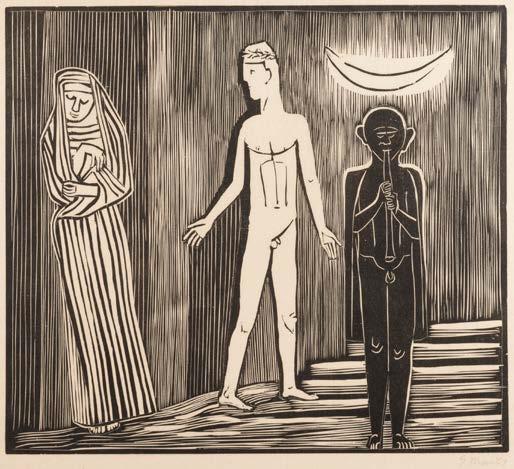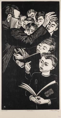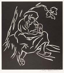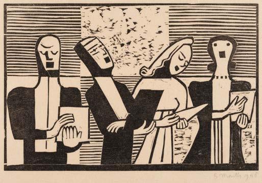 Holzschnitt auf chamoisfarbenem Papier mit Trockenstempel ‚Die s chaffenden‘. BM 41 x 30 cm, DM 25,5 x 22,5 cm. Unten rechts handsigniert ‚G.A. Mathey‘. Leicht gebräunt. In ein Passepartout montiert.