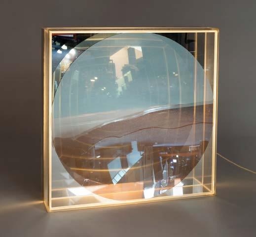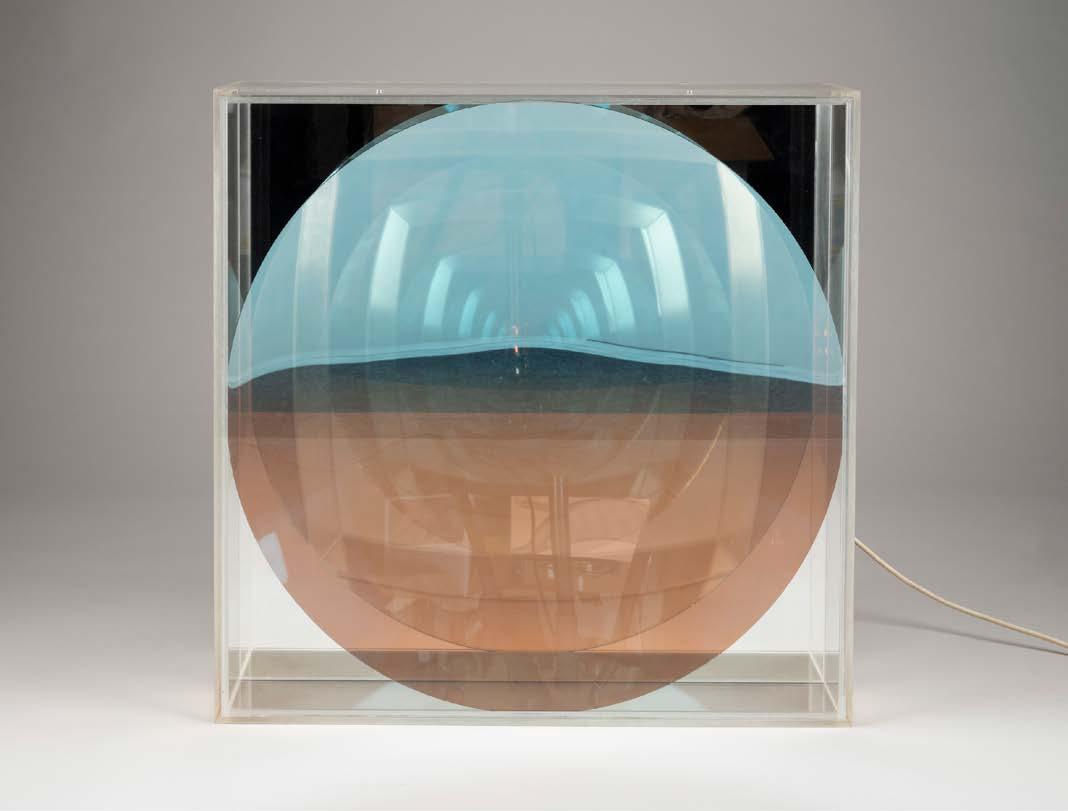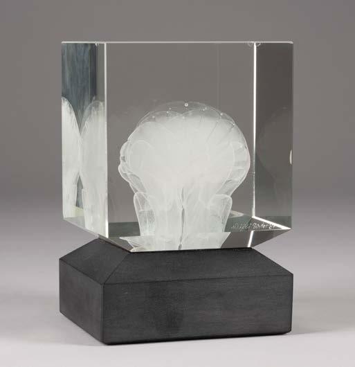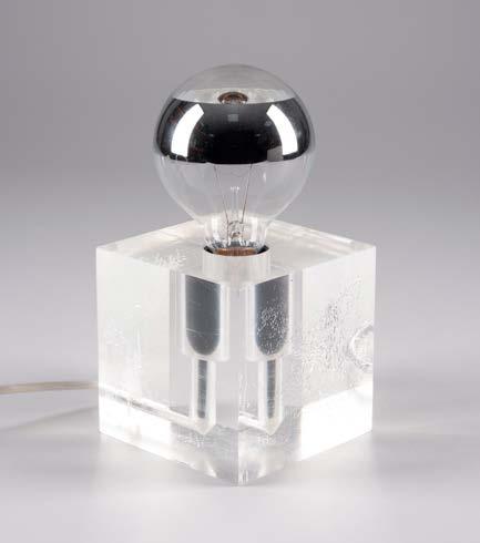Wohl Deutschland, um 1975 Würfel aus Acrylglas, 1-flg. elektrifiziert. H. 11,5 cm, B. 11,5 cm, T. 11,5 cm. Acryl teilw. m. kl. spannungsrissen.